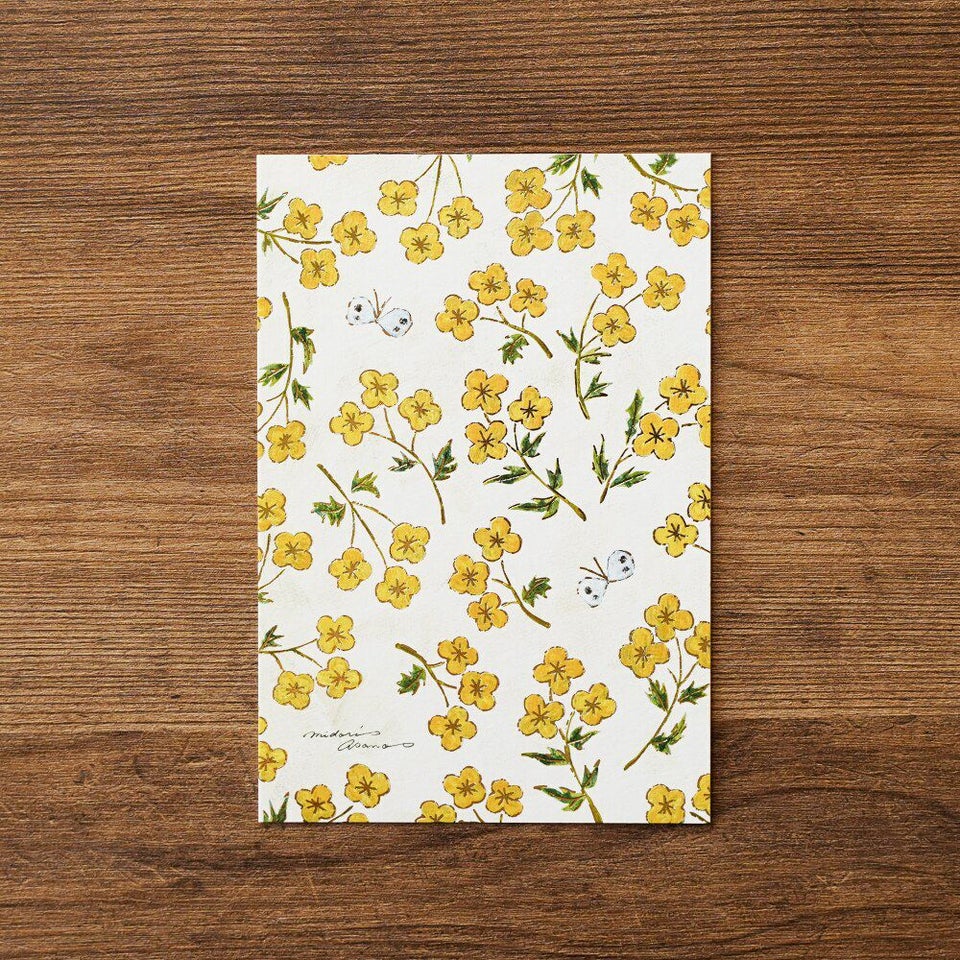 はがき全体に施された金の箔押しが美しく輝く、浅野みどりさんのポストカード。裏面にもフルカラー印刷を施しております。大切な方への贈りものに添えたり、お部屋のインテリアとして飾るのもおすすめです。