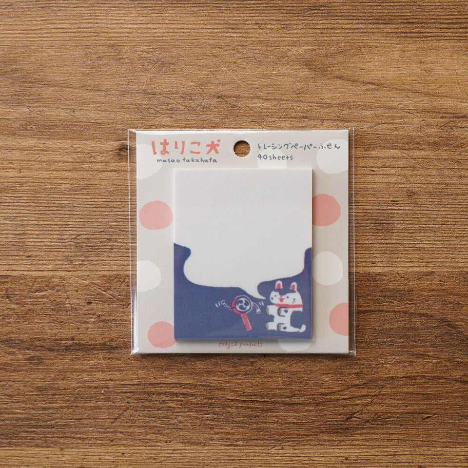 イラストレーター・高旗将雄さんの「はりこ」の犬が描かれたふせん。ノートに手帳に、どんどん貼りたくなってしまうかわいさです。