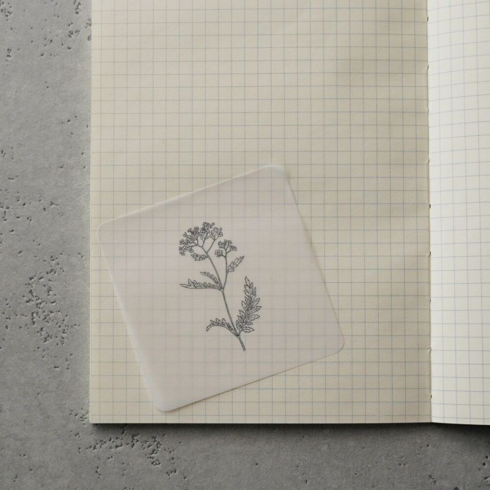 透け感のきれいなトレーシングペーパーの付箋紙。モノクロのボタニカルイラストがシックな印象です。水性のペンで書いた後、ティッシュで軽く押さえると早く定着します。鉛筆もおすすめです!