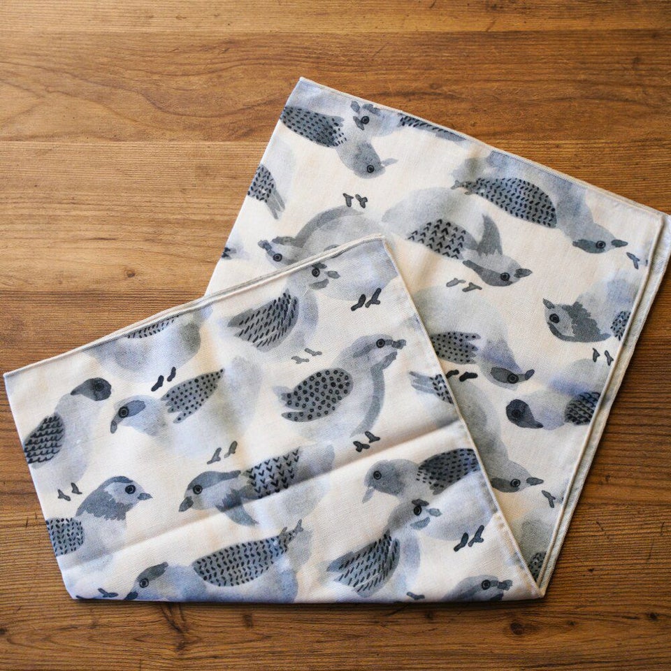 大判で吸水性があり、しっかり拭けて乾きやすいハンカチです。首に巻いたり、お弁当包みとしてもご使用頂けます。