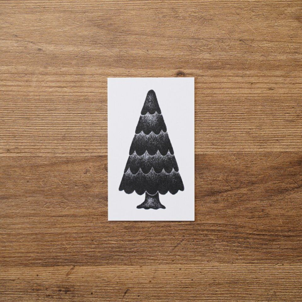 名刺と同じサイズのメッセージカードです。とんがり具合がマイルド。ちくちくしない針葉樹です。