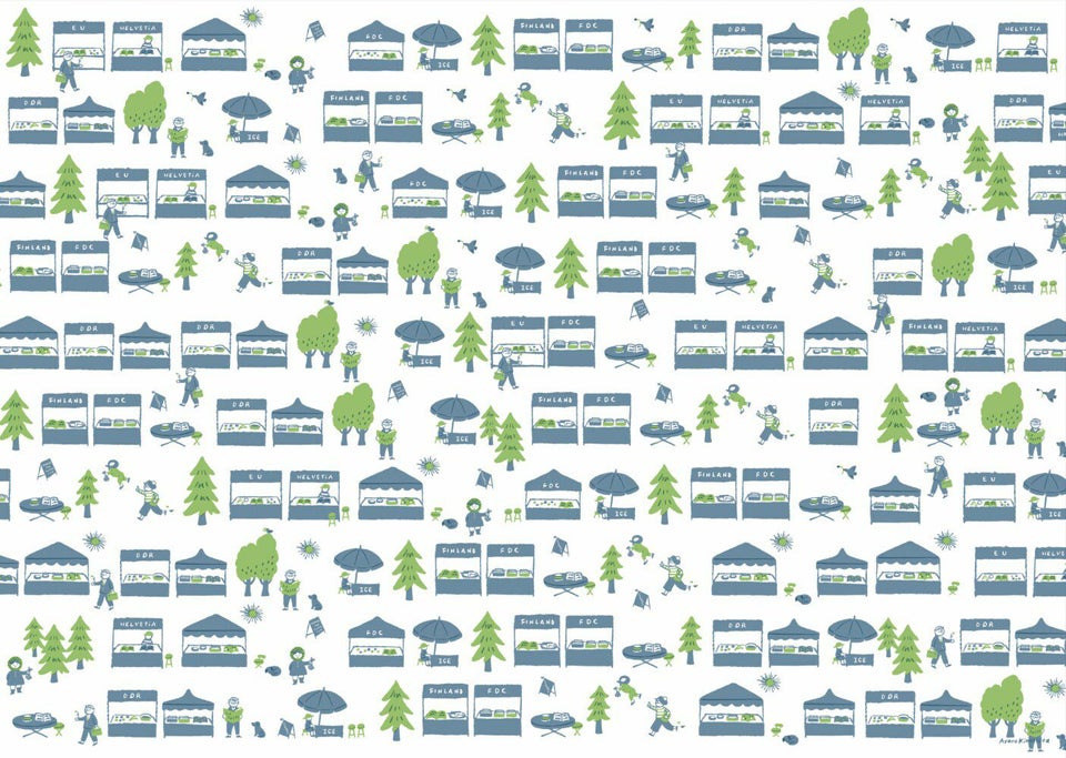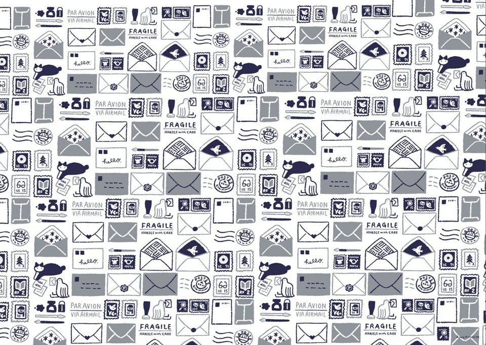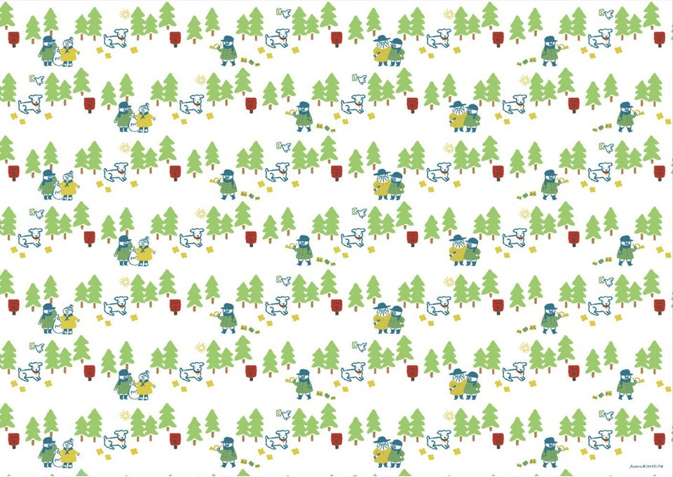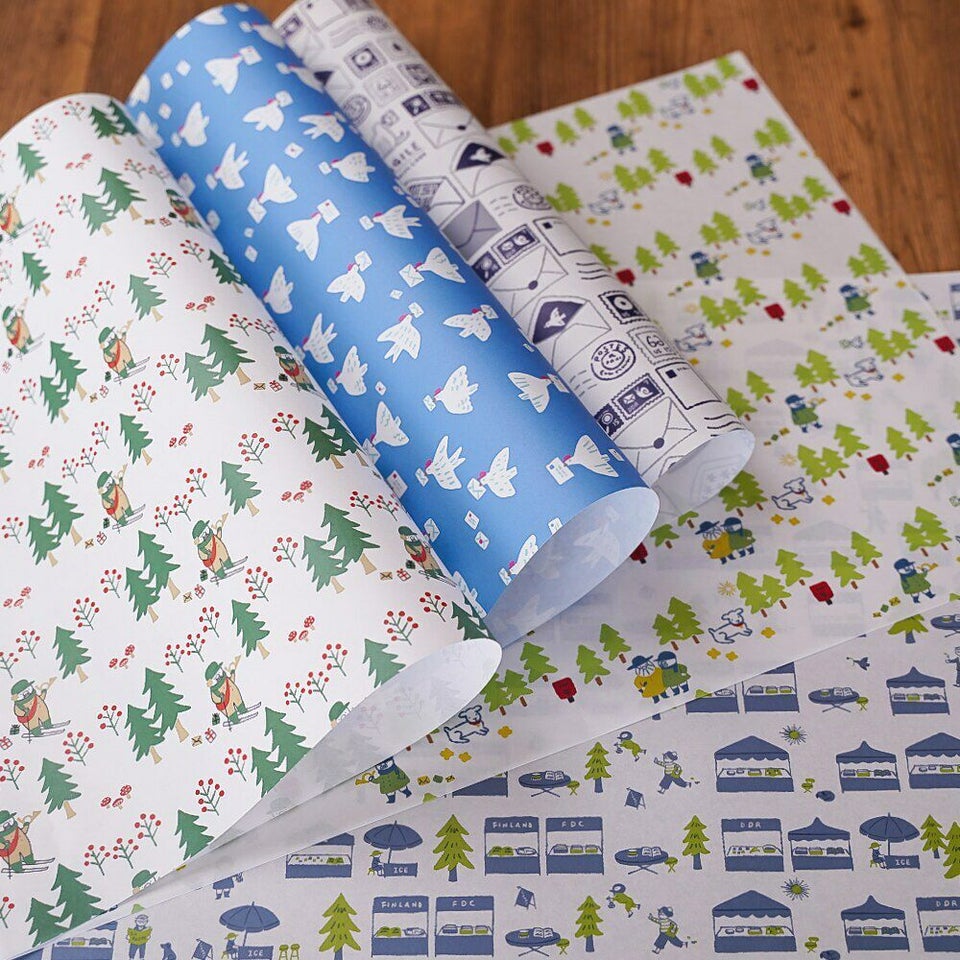 郵便に関する著書も複数出版されているイラストレーター・木下綾乃さん。新登場の包装紙は「郵便」がモチーフになった5つのデザインです。様々な仕掛けが散りばめられているので、ぜひじっくりとご覧ください。怠惰な郵便配達夫「ポス山ポス夫」と、可愛い助手の子ヤギ「ヤギ沢」も登場していますよ! 封筒を手作りして、とっておきの切手を貼って送りたくなる包装紙です。