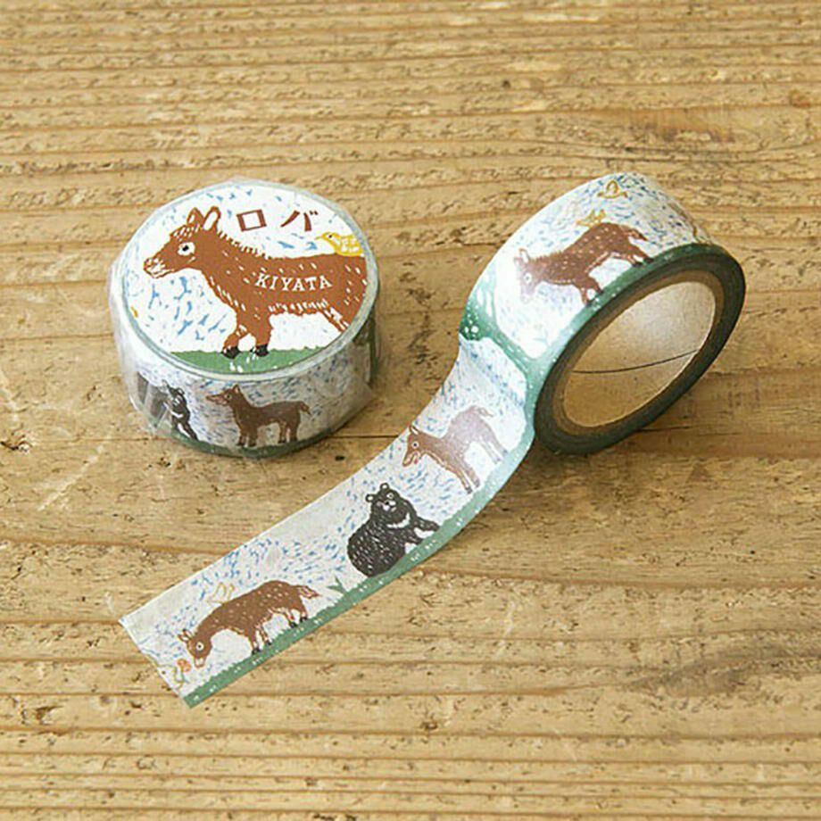 木版画調のイラストは、KIYATAデザインならではの個性にあふれ、素朴で愛嬌たっぷり。たくさん並ぶマスキングテープの中でも、ひときわ異彩を放っています。