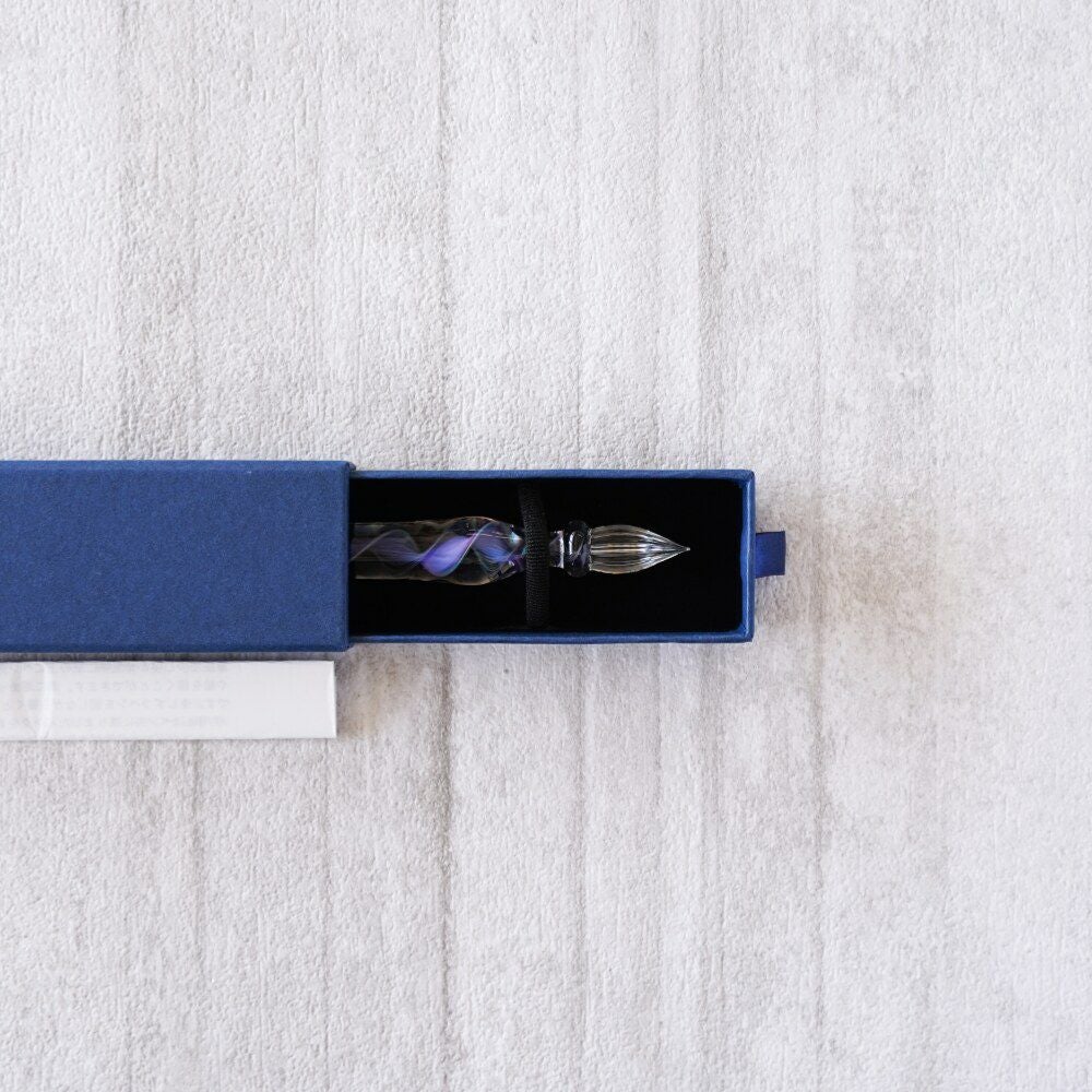 まるで飴細工のようにバーナーワークで作った、繊細なガラスアートを組み込んだ作品を手がける美術作家・藤田えみさん。「ガラス作品をもっと身近に楽しんで欲しい」という思いをプロダクションラインの「kokeshi」、そしてよりカジュアルな「こけしの蚤の市」というレーベルを通して形にしています。中でも独創的なガラスペンは、そのガラスの軸越しに見える透き通った世界に惹き寄せられてしまいそうです。