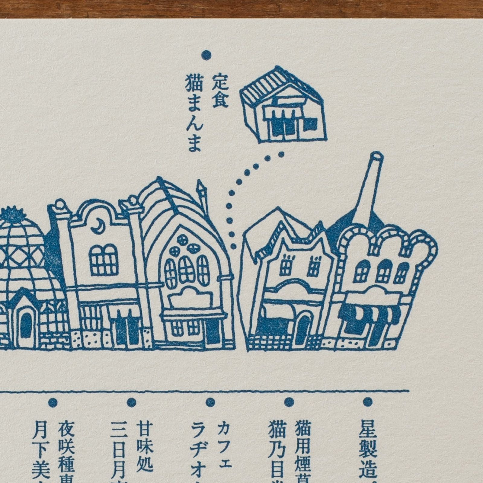 九ポ堂|活版印刷のポストカード「ツキアカリ商店街・町並み」