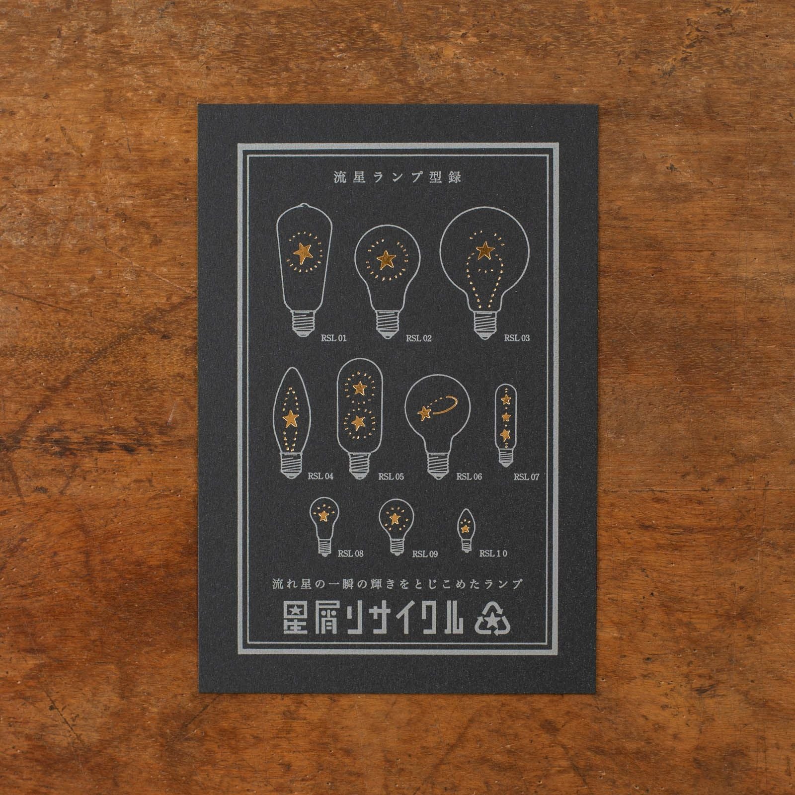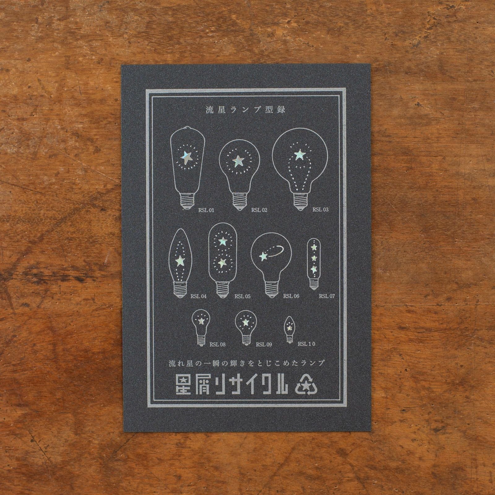 九ポ堂|活版印刷のポストカード「星もの・流星ランプ型録【ナイトブラック×銀】」
