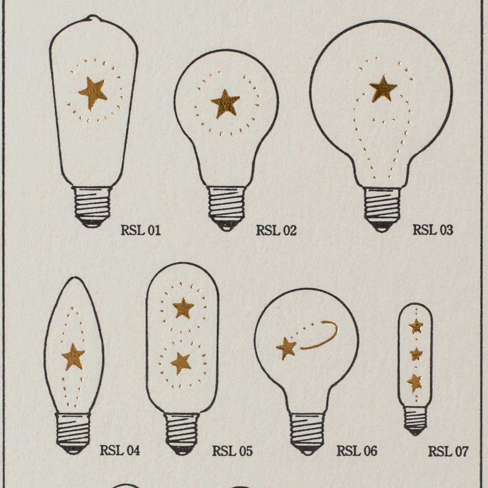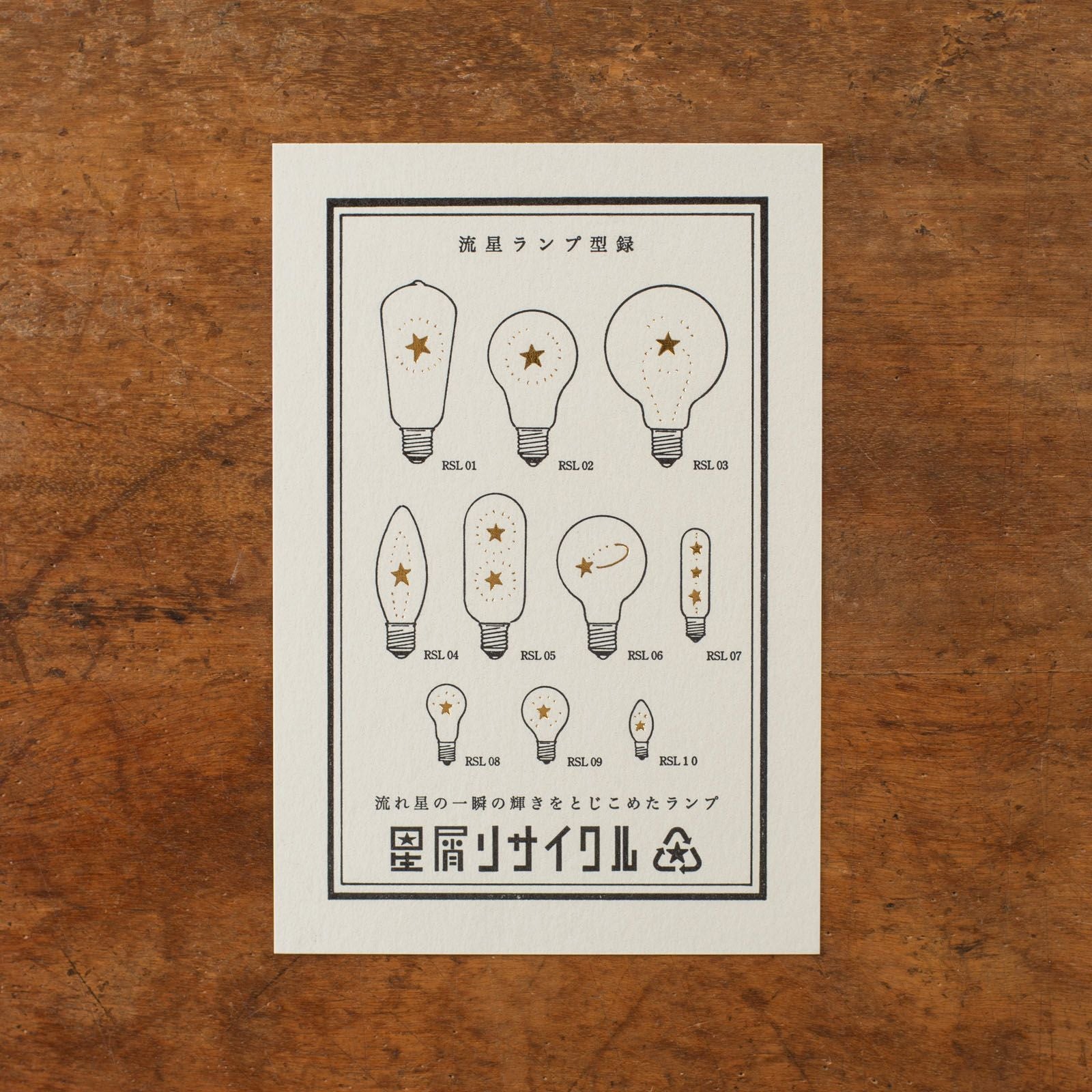 九ポ堂|活版印刷のポストカード「星もの・流星ランプ型録【白×金】」