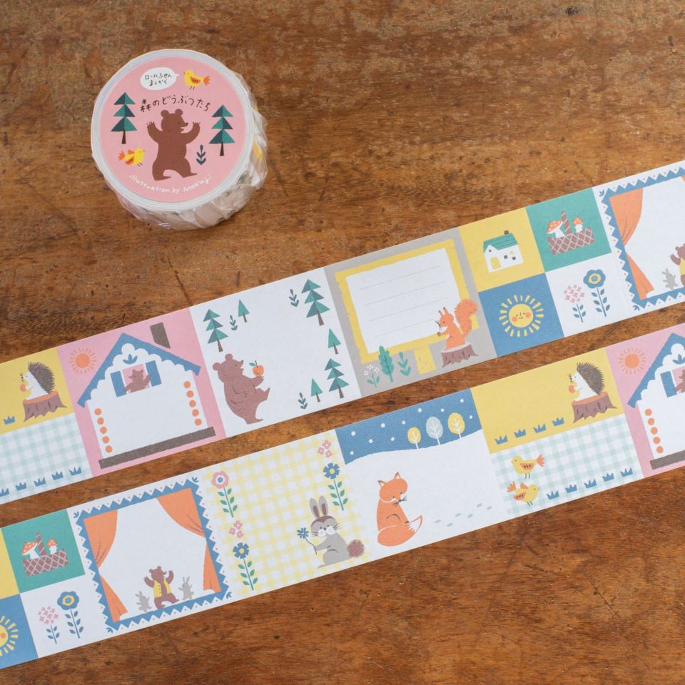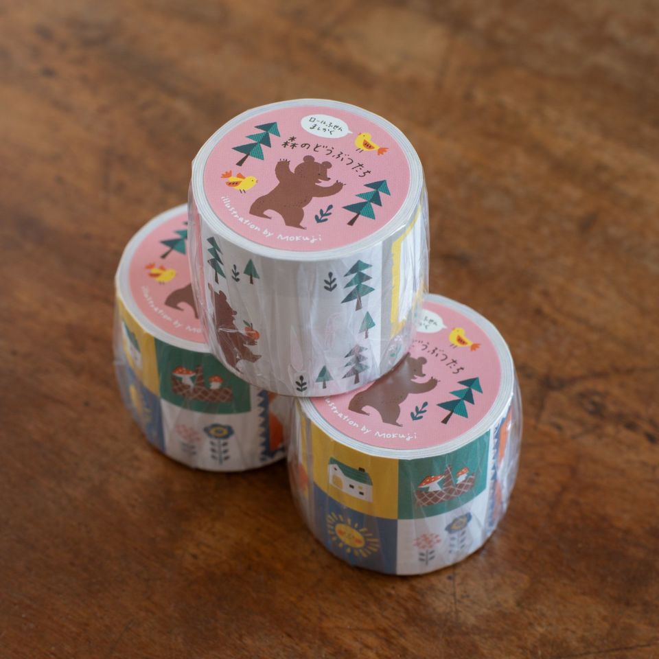 創作ユニット・Mokujiさんが描く、フレークシールでも人気の「森のどうぶつ」の世界観がロールふせんましかくになりました。ポップなカラーが外国の絵本のよう! プチギフトにメッセージを添えたり、お子さんへの伝言メモに使うのもいいですね。文字をしっかり書き込めるデザインなのも嬉しいポイントです。