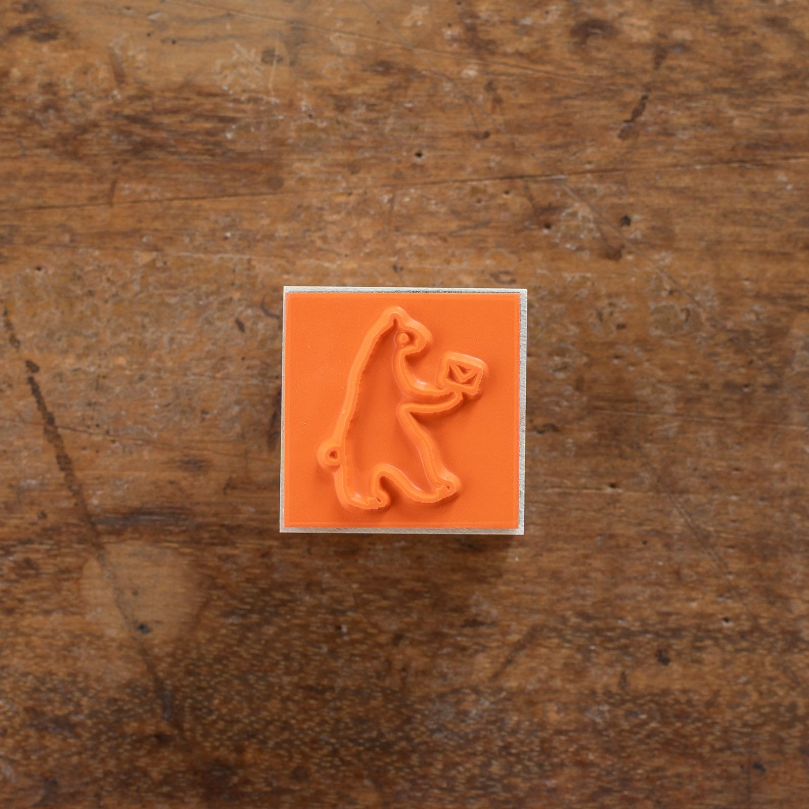 北海道にアトリエを構える、のりおさんとあさみさんによるものづくりユニット・ネクタイさん。ゆるく描かれた動物や人物たちの中にネクタイさんらしいユーモアが潜んでいて、見る人を夢中にさせてくれます。小さなお手紙を持った、くまおさんのスタンプです。