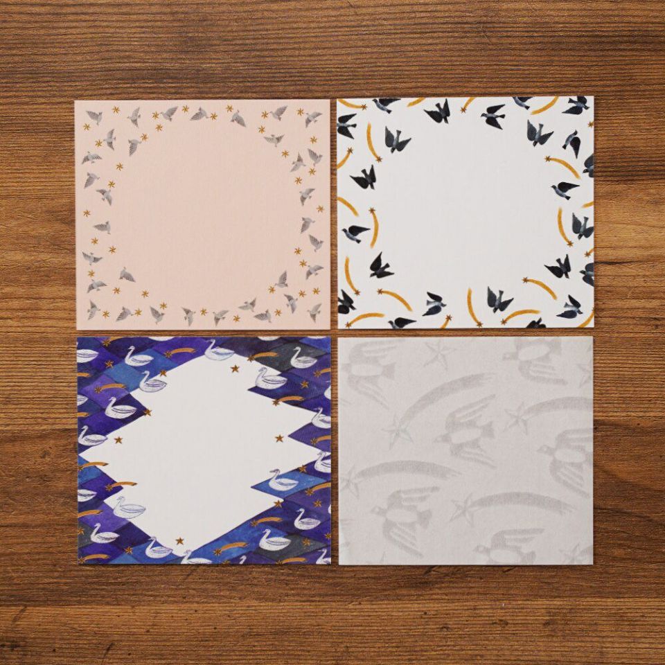 西淑さんの美濃和紙入りブロックメモです。鳥にまつわるデザインを集めました。