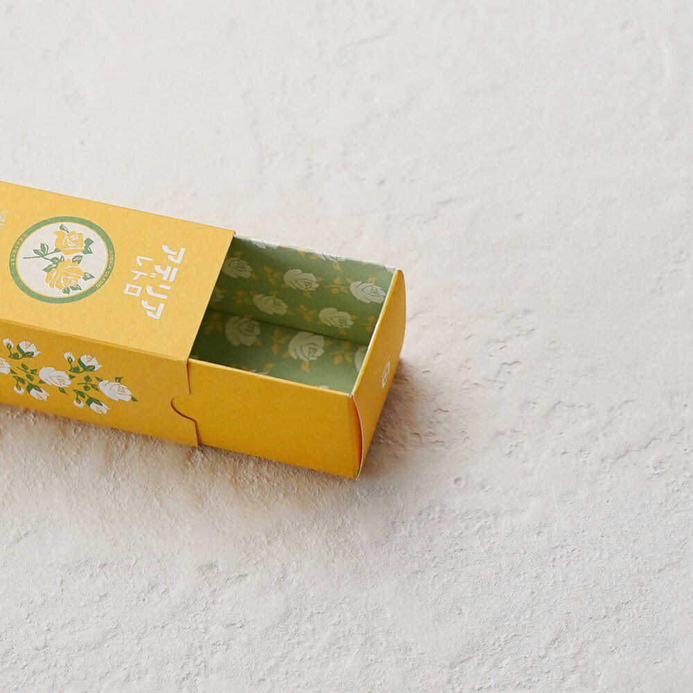 グラスやアデリアレトロのロゴ、切手型、長方形のテープ型など、いろいろなモチーフをフレークシールにしました。透明感のあるツヤっとしたシールがたっぷり入っています。パッケージもグラスの外箱を忠実にミニチュアに再現しました。