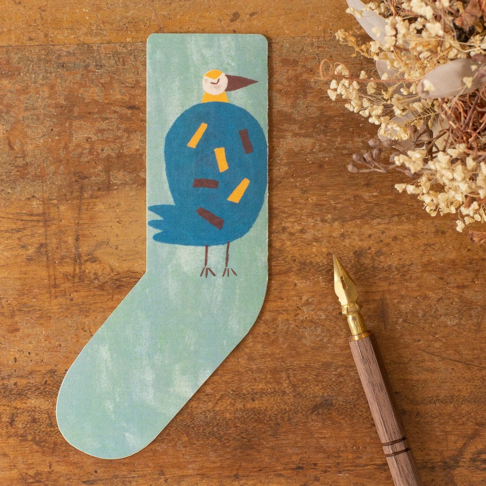 仲良く寄り添った鳥さんの姿が微笑ましい靴下カード。ギフトに添えるカードにしたり、紐をつけてオーナメントとして飾ったり、ぜひ色々な使い方を見つけてお楽しみください!