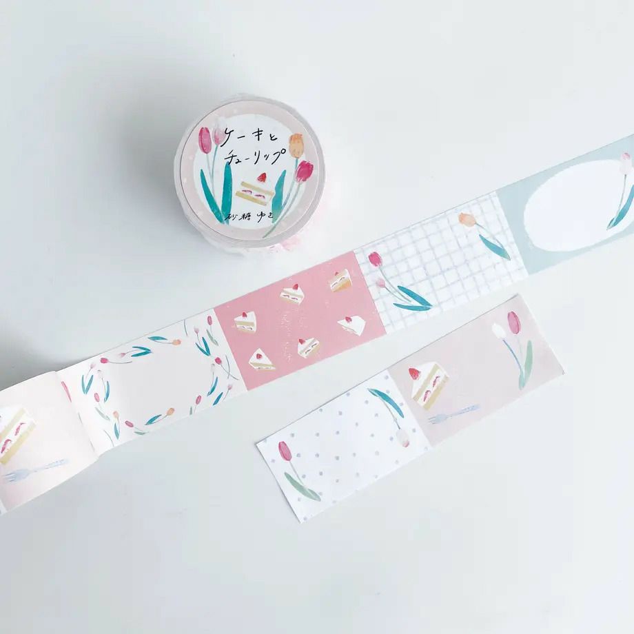 手紙社|砂糖ゆき・ロールふせん「ケーキとチューリップ」