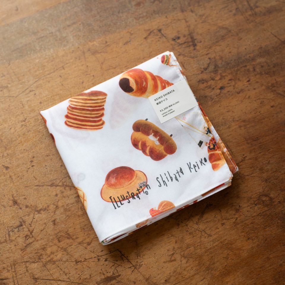 高知県を拠点に活動する、イラストレーター・柴田ケイコさん。オリジナルテキスタイルに描いてくれたのは、パンが大好きだという柴田ケイコさんが描く、おかしくてかわいいパンの世界。「おふとんぱん」に、「ヨットぱん」、高知名物ぼうしぱんをはじめとする、様々なパンが隠れています。触り心地が柔らかい綿ローンを使ったハンカチになります。
