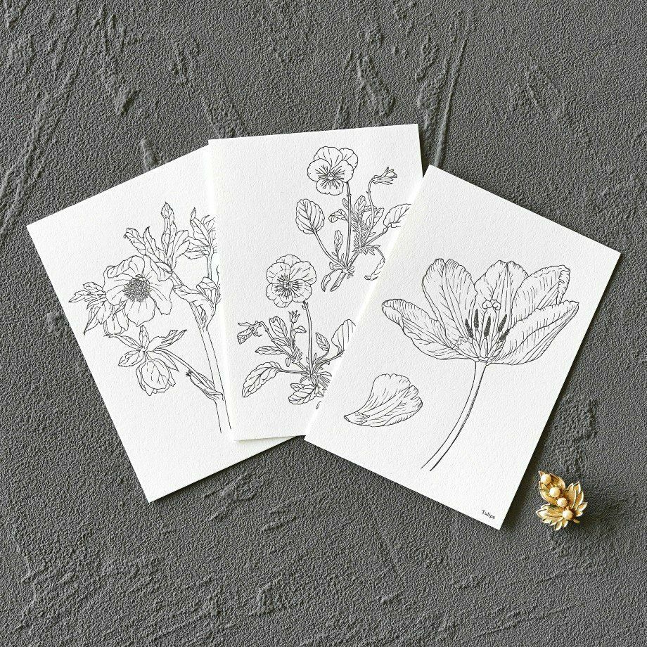 ポストカードは「チューリップ」「クリスマスローズ」「ビオラ」の3種類。凸凹とした手触りや、味わいのある質感は活版印刷ならでは。壁に飾ったり、メッセージを添えて友人に贈ったり、色を塗ってみたり。色々な使い方ができそうです。