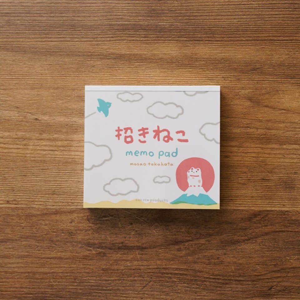 招きねこが片手をあげた姿がなんともかわいい、高旗将雄デザインのブロックメモ。ページをめくるたび、メモを使うたびに思わず笑顔になってしまいそう。毎日の暮らしをちょっと楽しくしてくれるようなアイテムです。