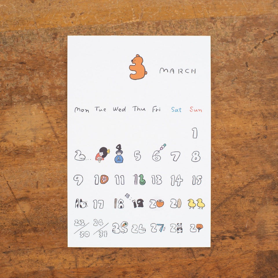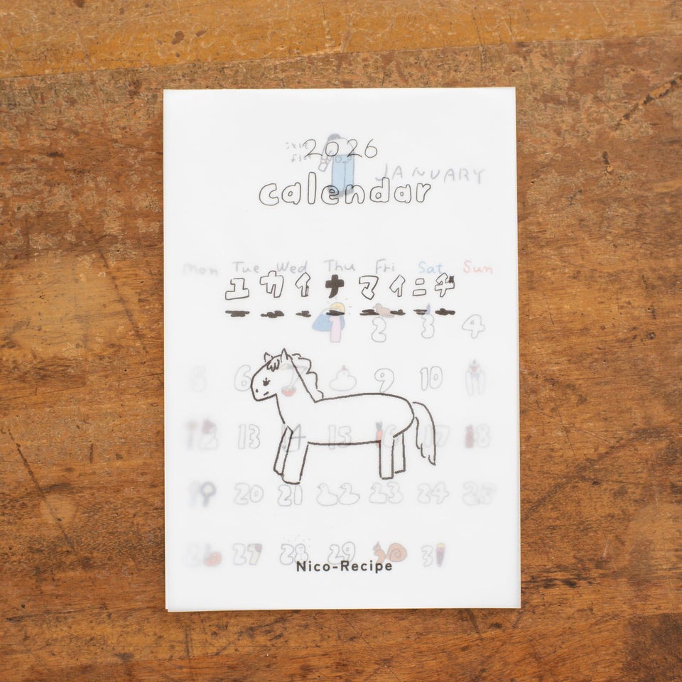 「ゆるりと愉快なはんこショップ」を掲げるNico-Recipeさんの2026年カレンダーが登場です! 日付の中に隠れた愛らしい動物や、食べ物のキャラクターたちに思わずクスッとしてしまいます。めくるたび今月はどんな子が隠れているか、じっくり眺めるのも楽しい時間になりますよ。