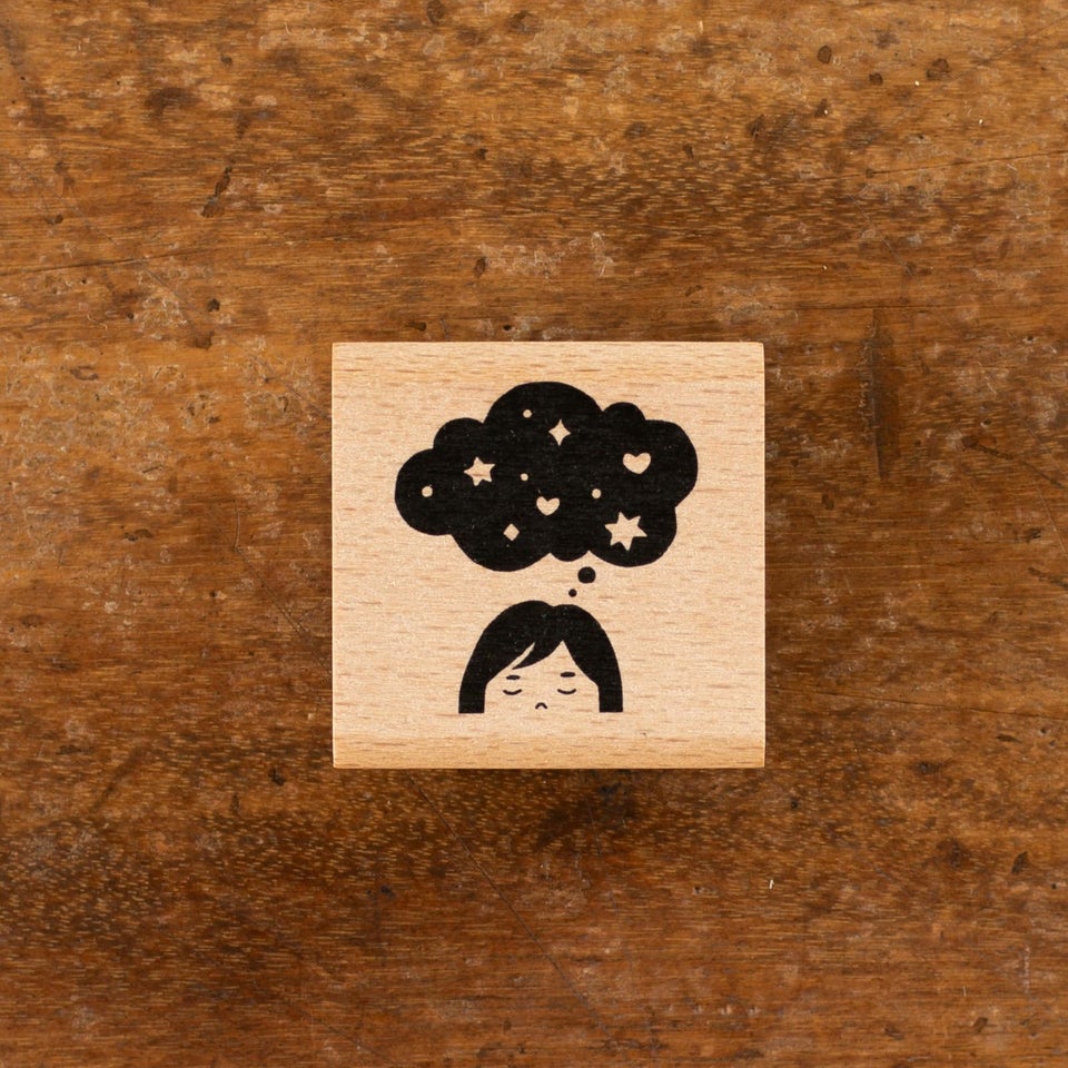 スタンプ「夢見る少女」は、何かに想いを馳せるような女の子が描かれたロマンチックなデザイン。マンスリー手帳に押すときは、枠の下に女の子の顔を合わせるのがポイントです。