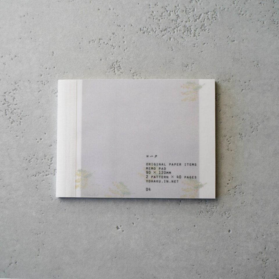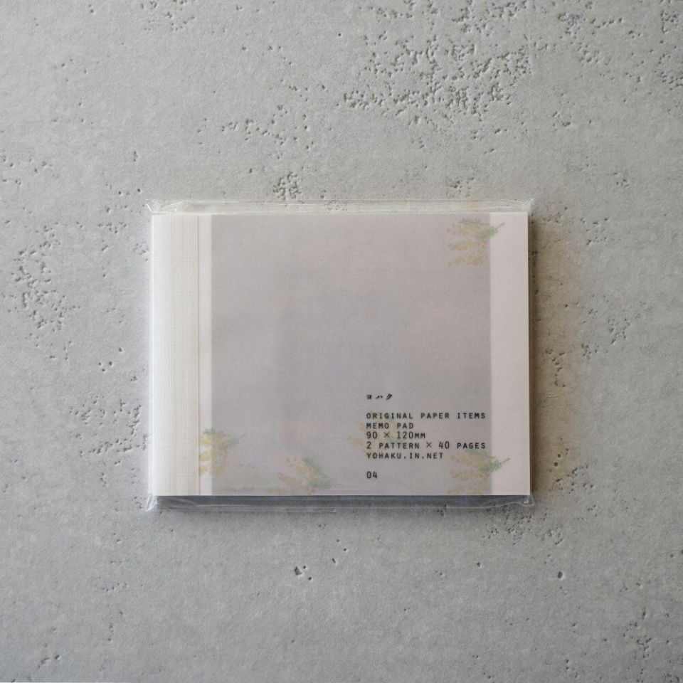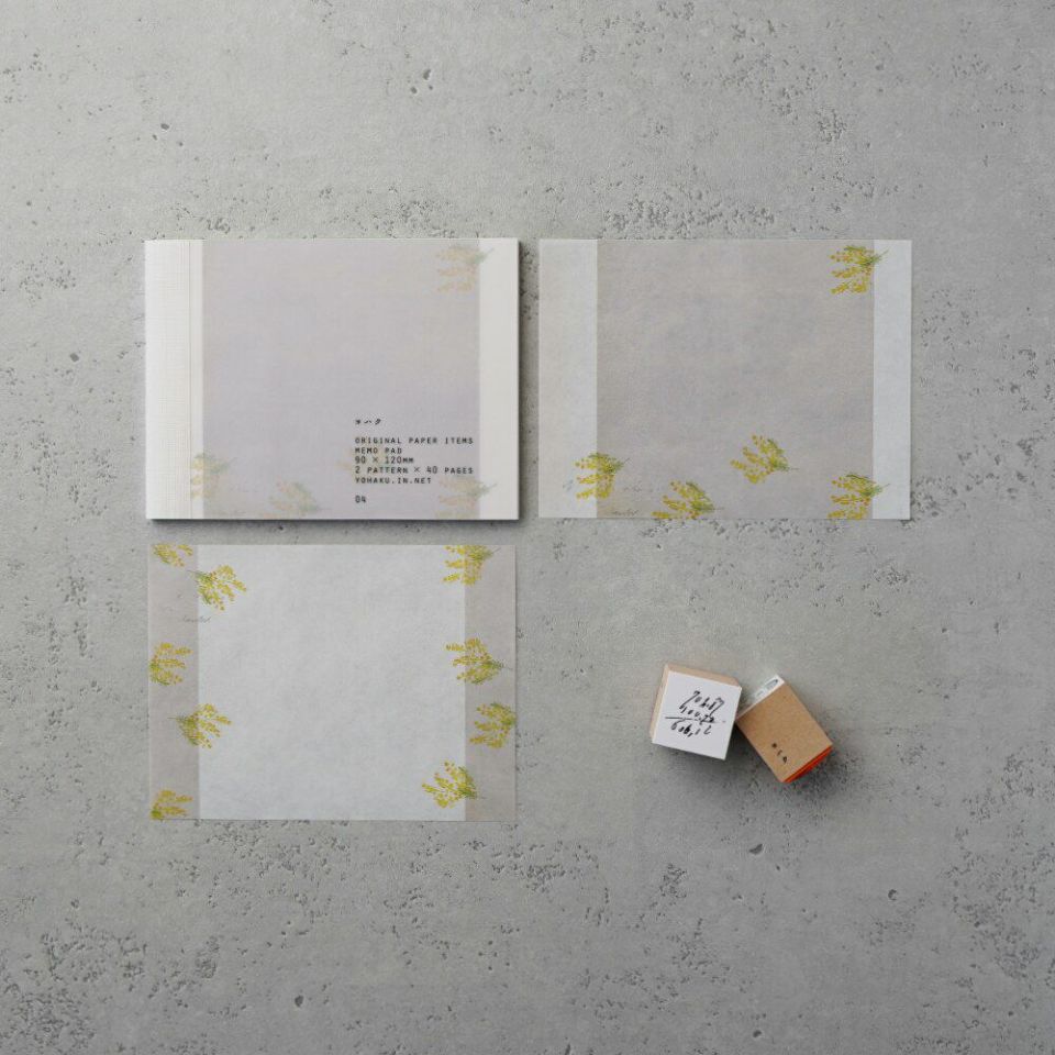 表紙は厚みのあるトレーシングで、中の紙は薄いけど張りがあって、透け感のある紙を使っています。マステ、ペーパーでもとても人気のあるミモザ。ヨハクさん自身も「本当にお気に入り」とのこと。メモ帳のミモザもまたとても綺麗です。