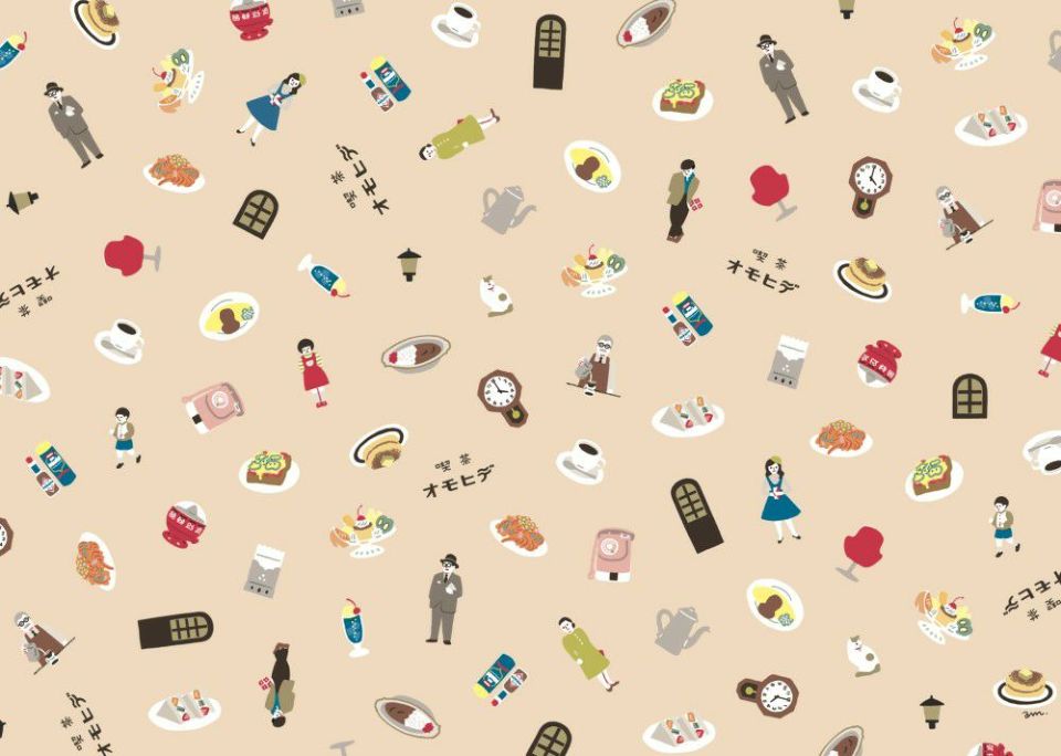 ナポリタンにプリンアラモード、ピザトースト…! あれもこれも食べたい軽食に、髭を生やしたマスターや真っ赤なレトロチェア。私たちの記憶の中のどこかにありそうな喫茶店を描いた「レトロ喫茶オモヒデ」を含めた、包装紙5柄セットです。