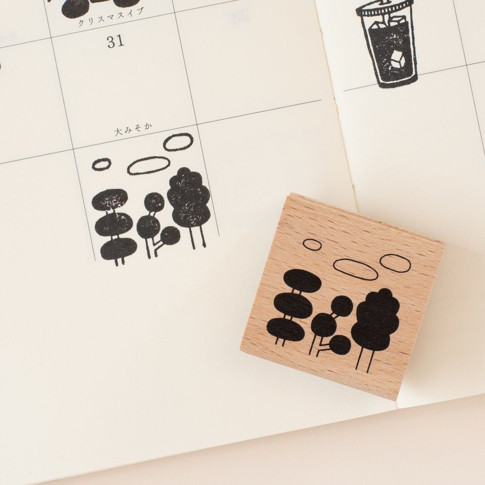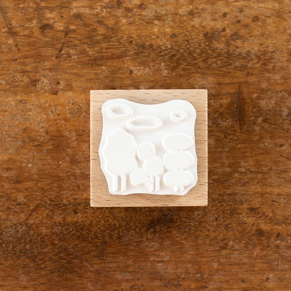 「雲の森」は、さまざまな形の木々が並ぶように描かれたスタンプ。横に繰り返し押すと、木々が連なって森のように広がります。