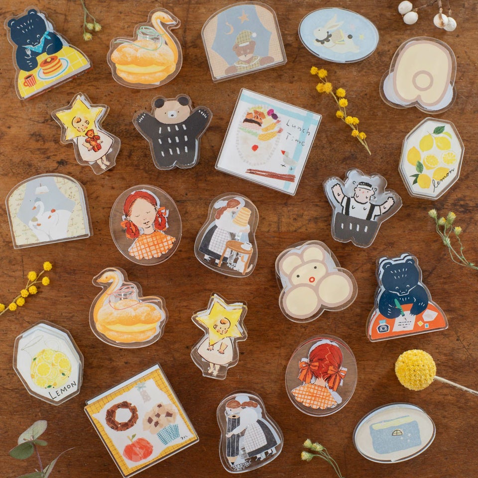 手紙社オリジナルアイテムに新しくアクリルクリップが仲間入り! イラストレーターユニット・ネクタイさんのアクリルクリップ「ちょっと書く、休憩」。鉛筆で書きものをする女の子、たくさん重ねたホットケーキでこれからおやつ休憩の女の子。両面異なる絵柄のリバーシブル仕様なので、そのときの気分で付け変えてお楽しみいただけます。メモや書類をまとめたり、手帳に挟んで使ったり。コロンとデスク周りに置いておくだけでも可愛いアイテムです。
