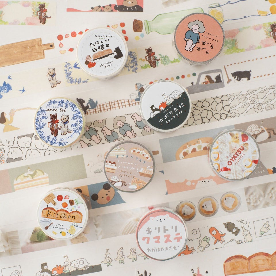 キリトリマステは、ハサミがなくても いつでもどこでも切り離せて 便利ですね。持ち歩きにも良さそうです。 パンを焼いたり、ドライブに出かけたり。 女の子とくまおさんのたのしい日曜日を ぜひピリッと使ってみてくださいね。