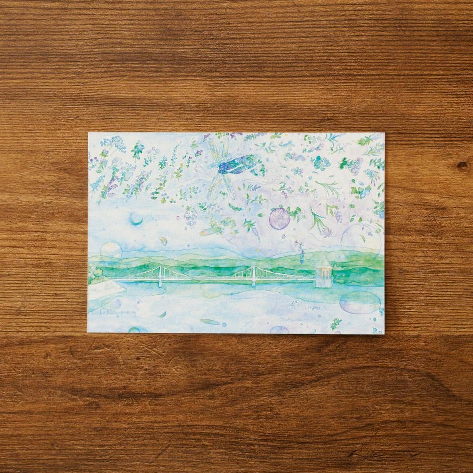 透明感のある色彩で、季節を運ぶ風や植物の香り、気持ちの変化などの目に見えないものを描き出す清水美紅さん。自分もその世界に入り込んでいるような気持ちになります。画材はアクリルガッシュ(水性アクリル絵具の一種)を使用されているとのこと。大切なお手紙として贈るのはもちろん、真っ白い壁に貼って自身でも楽しみたい。