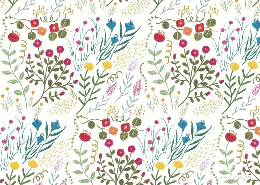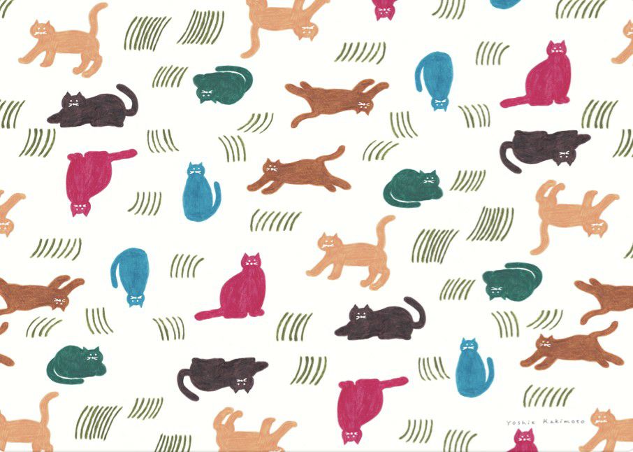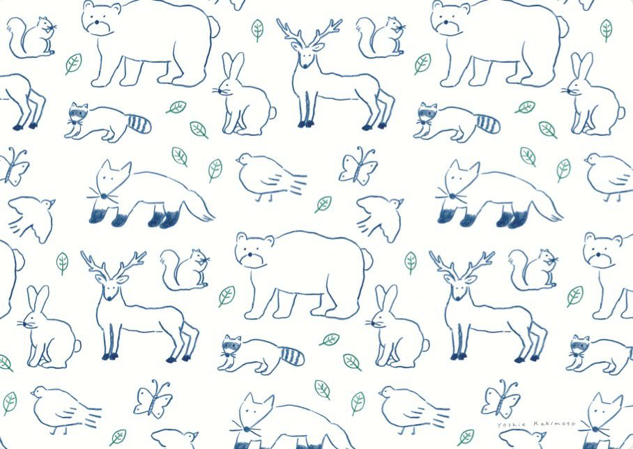 イラストレーターとして、書籍の装幀や広告、雑貨の制作など幅広く活躍するイラストレーター・柿本芳枝さんの包装紙です。色鉛筆やオイルパステルで描かれており、その風合いが美しい10柄のセットです。