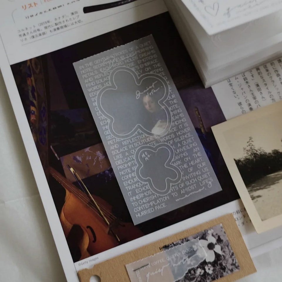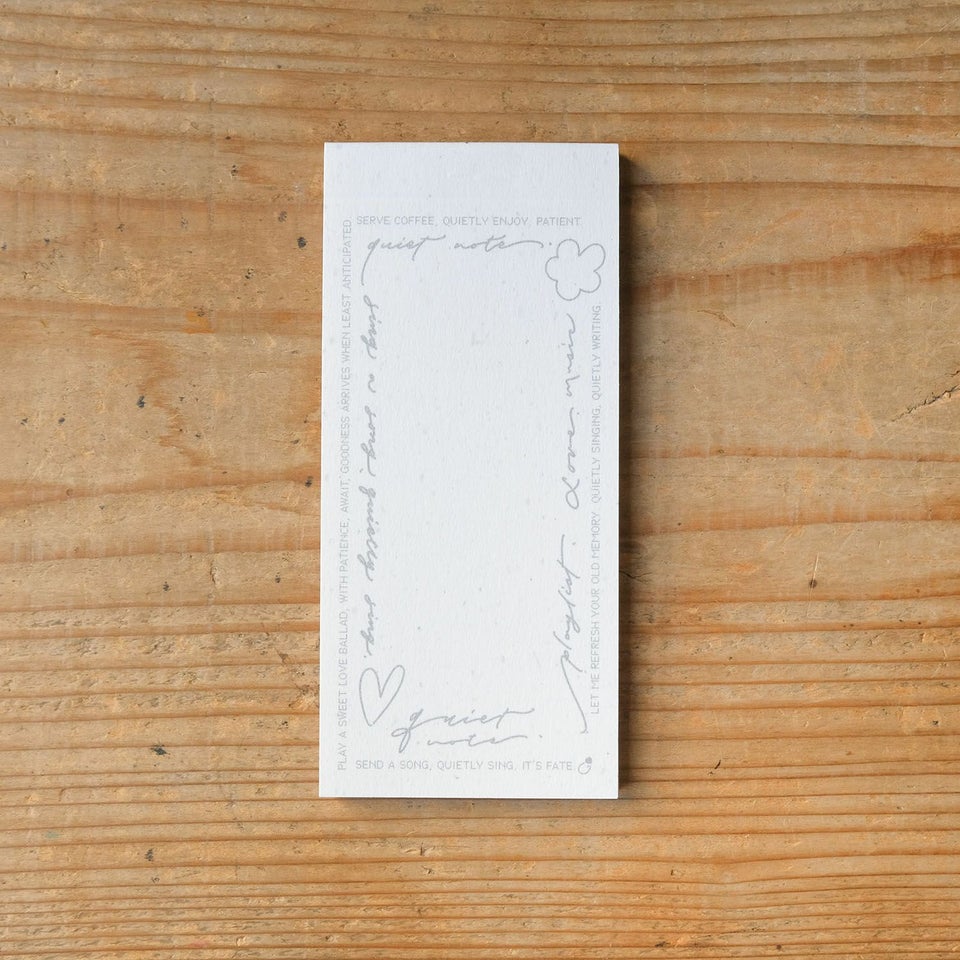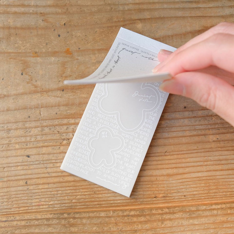 手帳をこよなく愛し、手帳好きのための文房具を展開する台湾のグラフィックデザイナー・茄子先生。「Quiet Note」は、5種類のデザインが1冊にまとまったメモパッド。そのままメモとしても使うのはもちろん、コラージュに使うのもおすすめ。曇りガラスのような質感のトレーシングペーパー素材なので、他の紙素材と重ねて使うとおしゃれに仕上がりますよ。