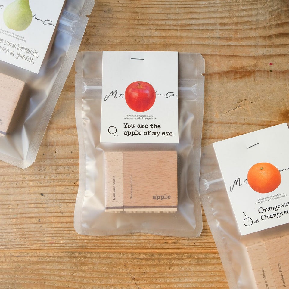手帳をこよなく愛し、手帳好きのための文房具を展開する台湾のグラフィックデザイナー・茄子先生。「Hello, fruit.」は、果物のイラストが描かれたスタンプと、その果物にまつわる言葉のスタンプがセットになったシリーズです。