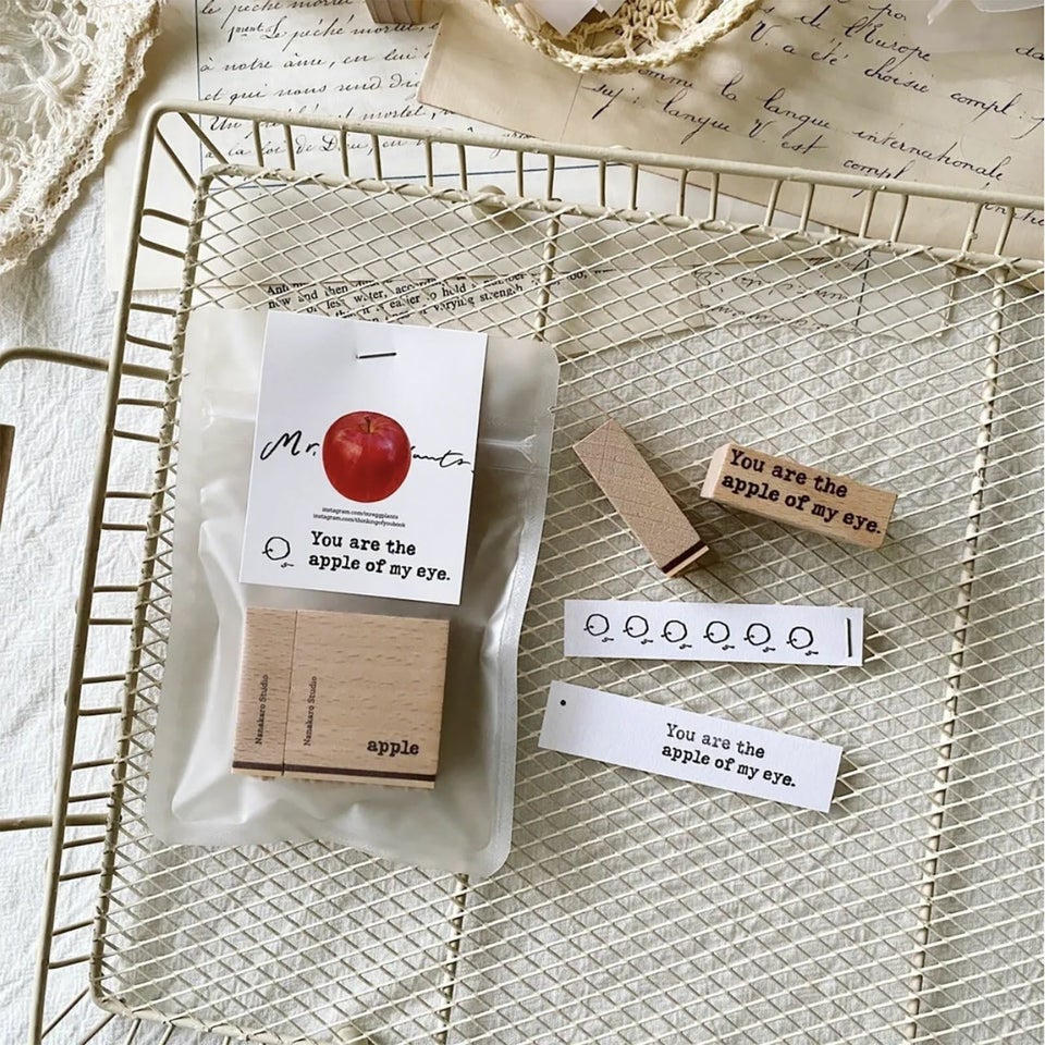 りんごの絵のスタンプ:12×12mm 文字のスタンプ:12×36mm