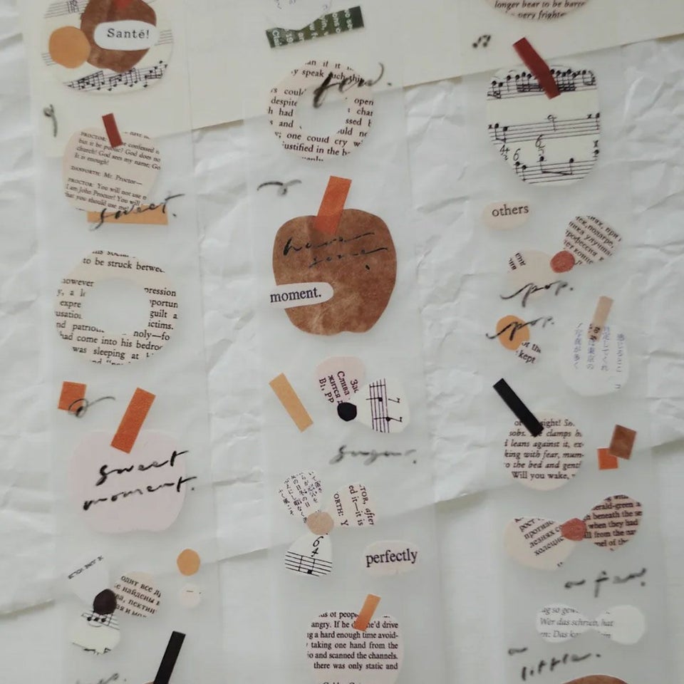 手帳をこよなく愛し、手帳好きのための文房具を展開する台湾のグラフィックデザイナー・茄子先生。「Plates in the garden」は、実際の紙をコラージュして形づくられたマットな質感のPETテープ。果物や植物がデザインされており、熟した果実のような色づかいにうっとりしてしまいます。