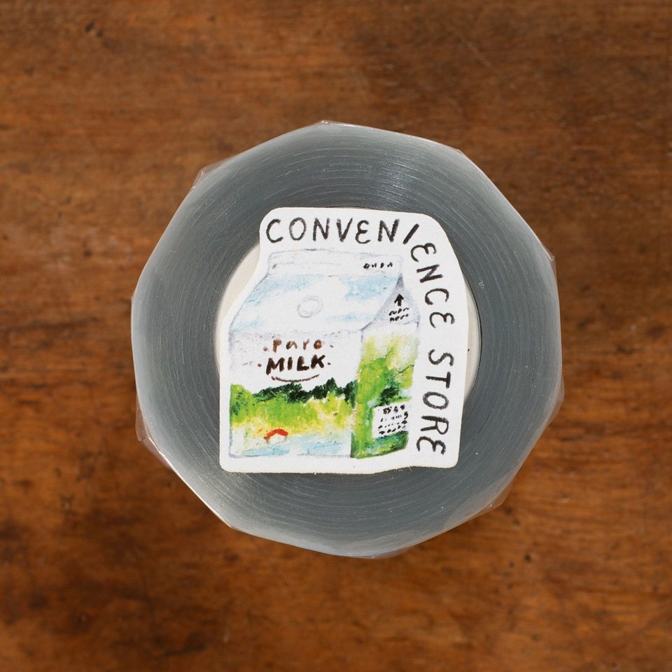 「Convenience Store」は、日本のコンビニのおいしいがそのまま小さなアートになった、愛らしいPETテープ。おにぎりや菓子パンなど、誰もが一度は手に取ったことのある定番アイテムが、やわらかなパステルカラーで描かれています。透明素材をいかして、重ねて貼れば奥行きが生まれ、好きなモチーフを切り取れば、アレンジの幅がぐんと広がります。手帳やカード、ラッピングに添えるだけで、見慣れたコンビニの風景が、ちょっと特別でかわいい世界に生まれ変わるアイテムです。
