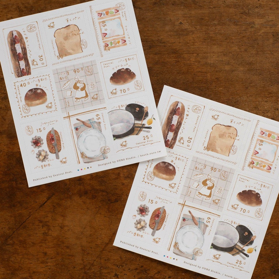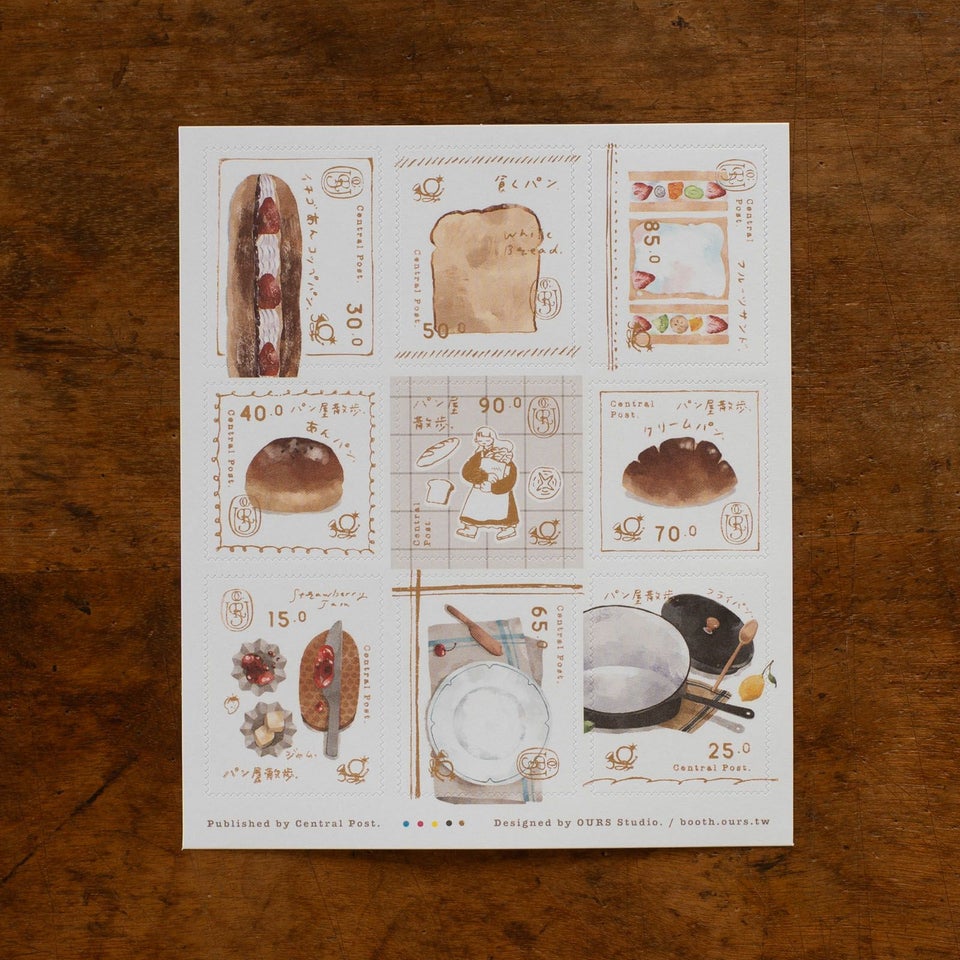 宝石のようにきらめくフルーツがぎゅっと詰まったフルーツサンド、お気に入りのお皿にのせたふわふわのパンに甘いジャム。「Sweet Hours Stamp Sticker」 は、そんなおいしくて幸せな時間を閉じ込めたデザインの切手風シールです。ふんわり漂う甘い香りと至福のひとときを感じながら、手紙やノートを彩ってみてはいかが?