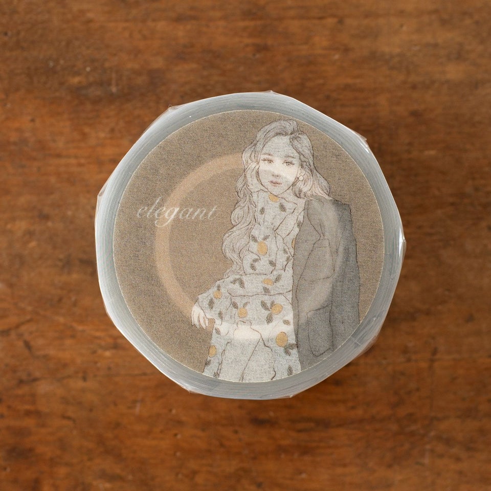 「Elegant」は、気品あふれる女性の美しさを繊細に描いた、上質感漂うPETテープ。ひとつひとつのイラストが贅沢に大きくあしらわれているため、ページに貼るだけでデコレーションがぐっと上品に仕上がります。透明素材のPETテープならではの抜け感があり、紙の上に直接貼っても、ほかの素材と重ねても自然に馴染むのが魅力。