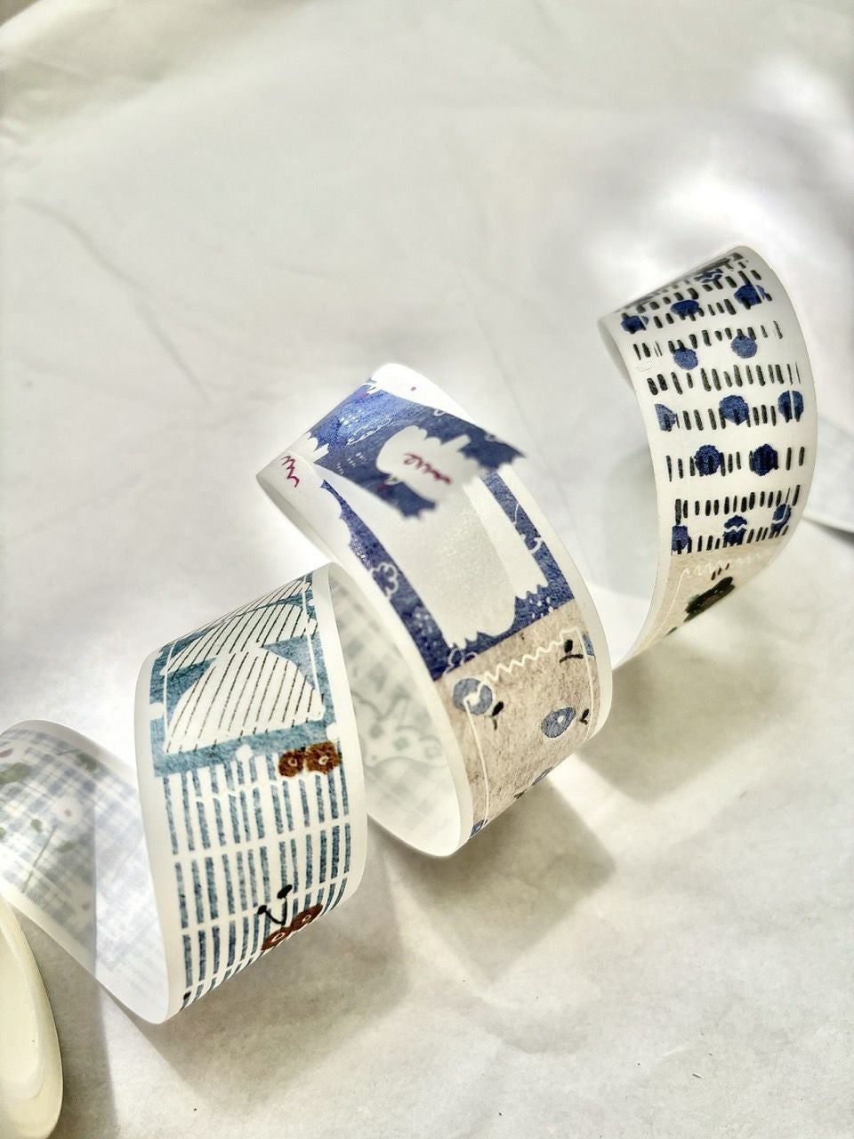 「Ten parts」は、青色をベースにした10種類の絵柄が並ぶ、爽やかな印象のマスキングテープです。絵柄に沿った切り取り線が入っているため、ハサミ要らずでシールのように手軽にコラージュが楽しめるのがポイント。テープカッターでカットしたようなギザギザの形状が、さりげないアクセントに。手帳やラッピングなど、さまざまなシーンで活躍してくれますよ。