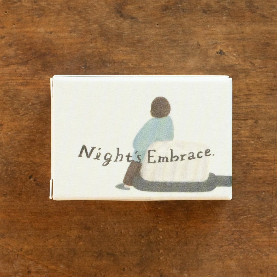 Night's Embrace シリーズの「Brushing teeth in a daze」は、何気ない歯を磨く時間を愛おしく切り取ったスタンプ。毎日繰り返す習慣だからこそ、そのひとときに心を寄せ、自分と向き合う静かな時間に。そんなメッセージが込められています。大きな歯ブラシに腰かける姿に思わず心が緩みそう。
