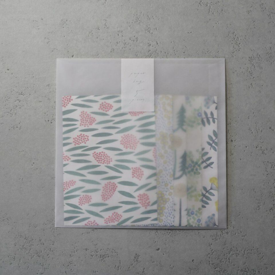 totoganashiの人気の柄でつくった、ペーパーバッグのセットです。紙袋の柄は全部で5種類。1柄につき1枚ずつ入っています。ちいさなプレゼントやお裾分け、お手紙を入れてなど、あなたの日々の暮らしにお役立て頂けましたら嬉しいです。