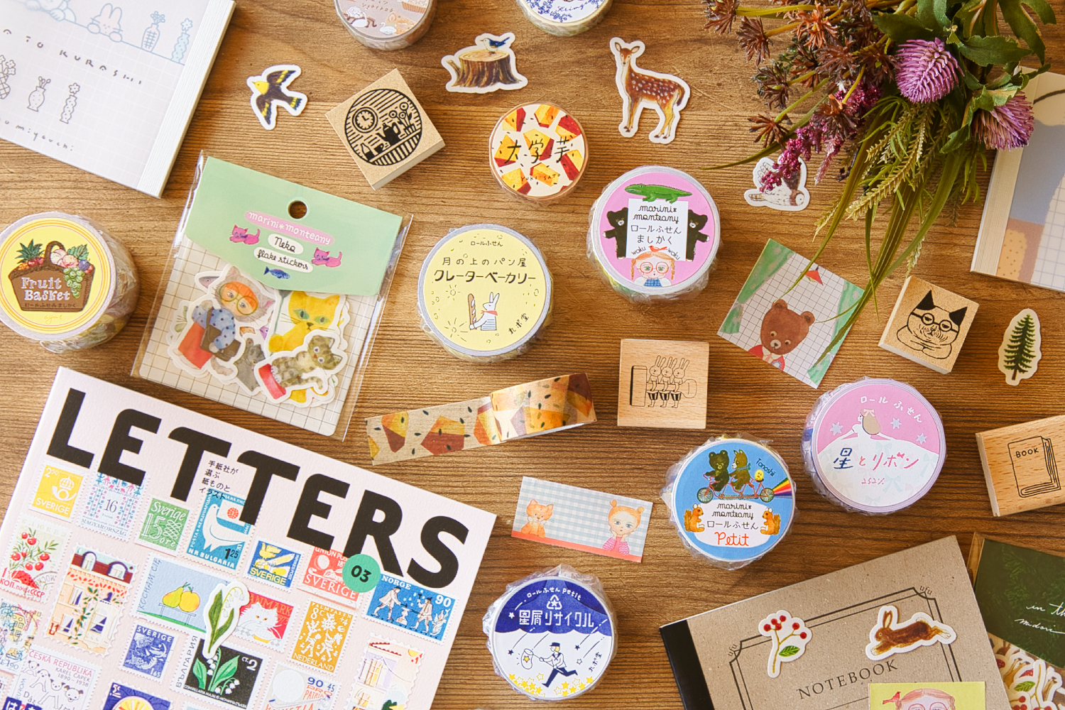 手紙社が敬愛する作家とコラボレーションした手紙社オリジナル商品を中心に、雑誌『LETTERS』や絵本『めがねこ』などの書籍もお持ちします。マスキングテープ、フレークシール、ロール付箋、メモパッド、クリアファイルなど、日常にちょっとした彩りを添える紙もの雑貨をぜひお手に取ってご覧ください。
