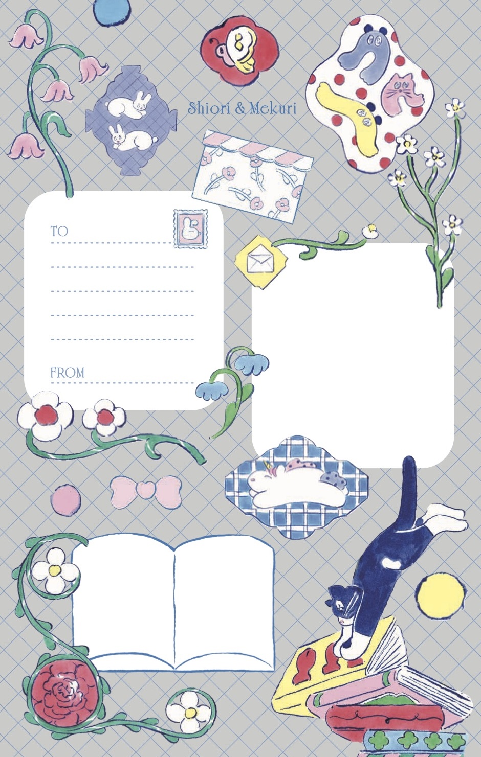 今回の展示に合わせ、数々の出版記念アイテムを製作させていただきました。プロダクトデザインを担当いただいたのは、『しおりとめくり 北澤平祐作品集』の誌面デザインも手がけた、まさにしおりちゃんとめくりちゃんを知り尽くした、パイ インターナショナルのデザイナー・佐藤美穂さん。書籍から飛び出してきたような しおりちゃんとめくりちゃんのアイテムを、日々の生活に取り入れてお楽しみください。