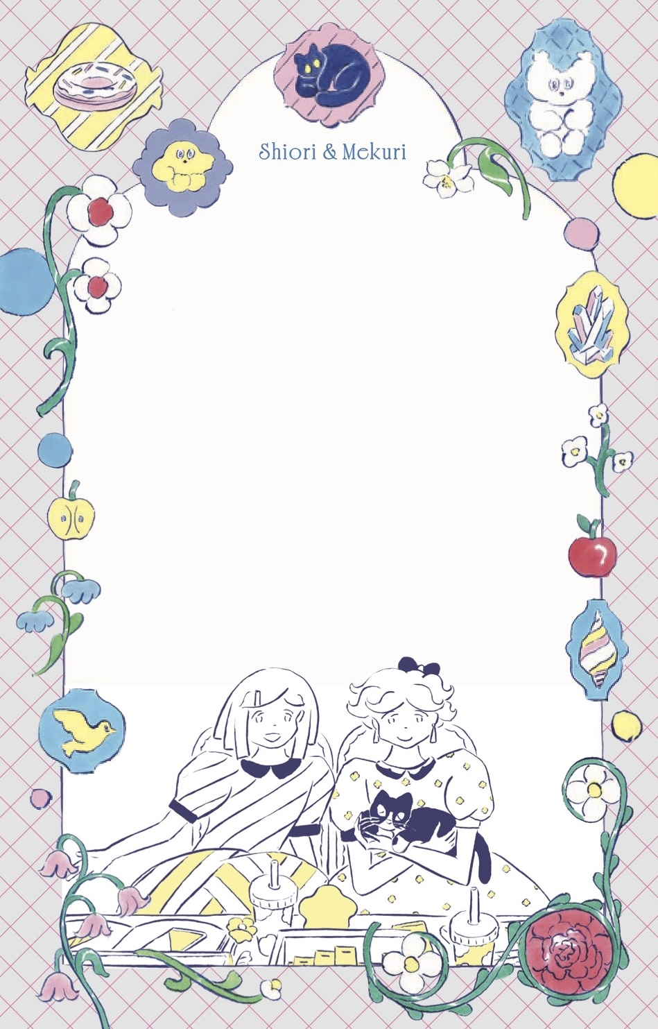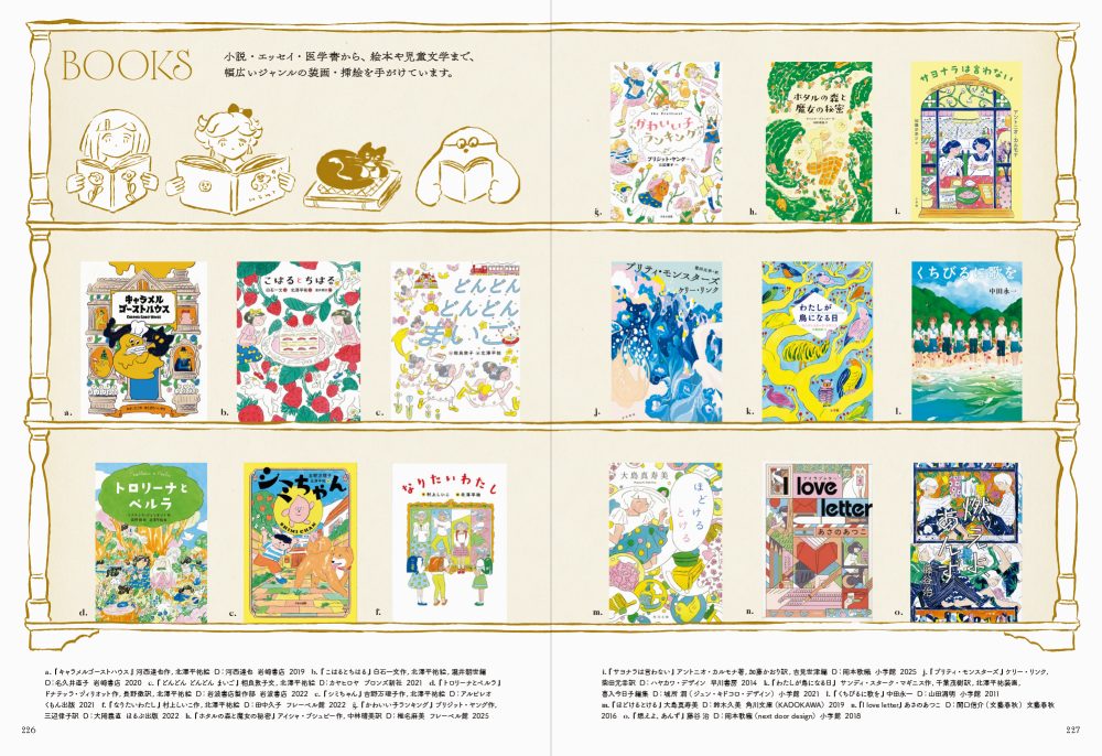 また2人の女の子を描くことの多い北澤さん。本作品集でも、美大生の「しおりちゃん」と「めくりちゃん」が、北澤さんの作品をナビゲートしていくという、作品集ながらも物語を感じる楽しい構成となっています。二人の姿を通して作品を見ていくうちに、北澤さんの日々のまなざしや、作品に秘められた想いが、あなたの心にもそっと芽吹いてきそうです。