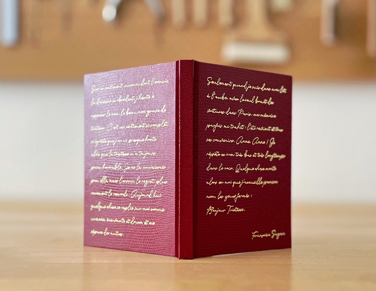本を読んだ印象を色で例えるのも面白いですね。永岡さんはこの本に「赤」を感じたそう。表表紙には有名な冒頭部分を、裏表紙には終わりの部分が箔押しされています。