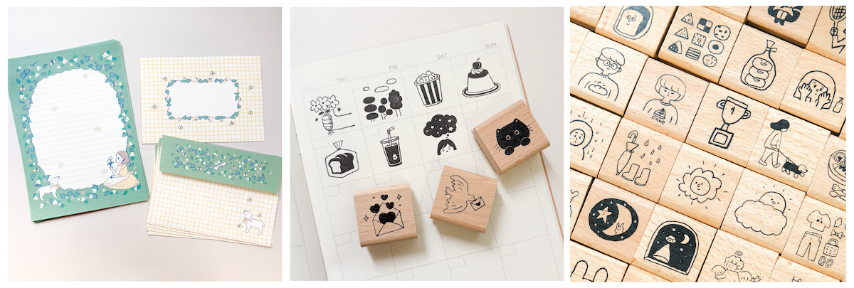 『LETTERS 03』の描きおろしイラストで、スタンプやレターセットを3アイテム制作いたしました! 雑誌の発売と同時に、手紙社の実店舗やオンラインショップ「月刊手紙舎」などで販売いたします。