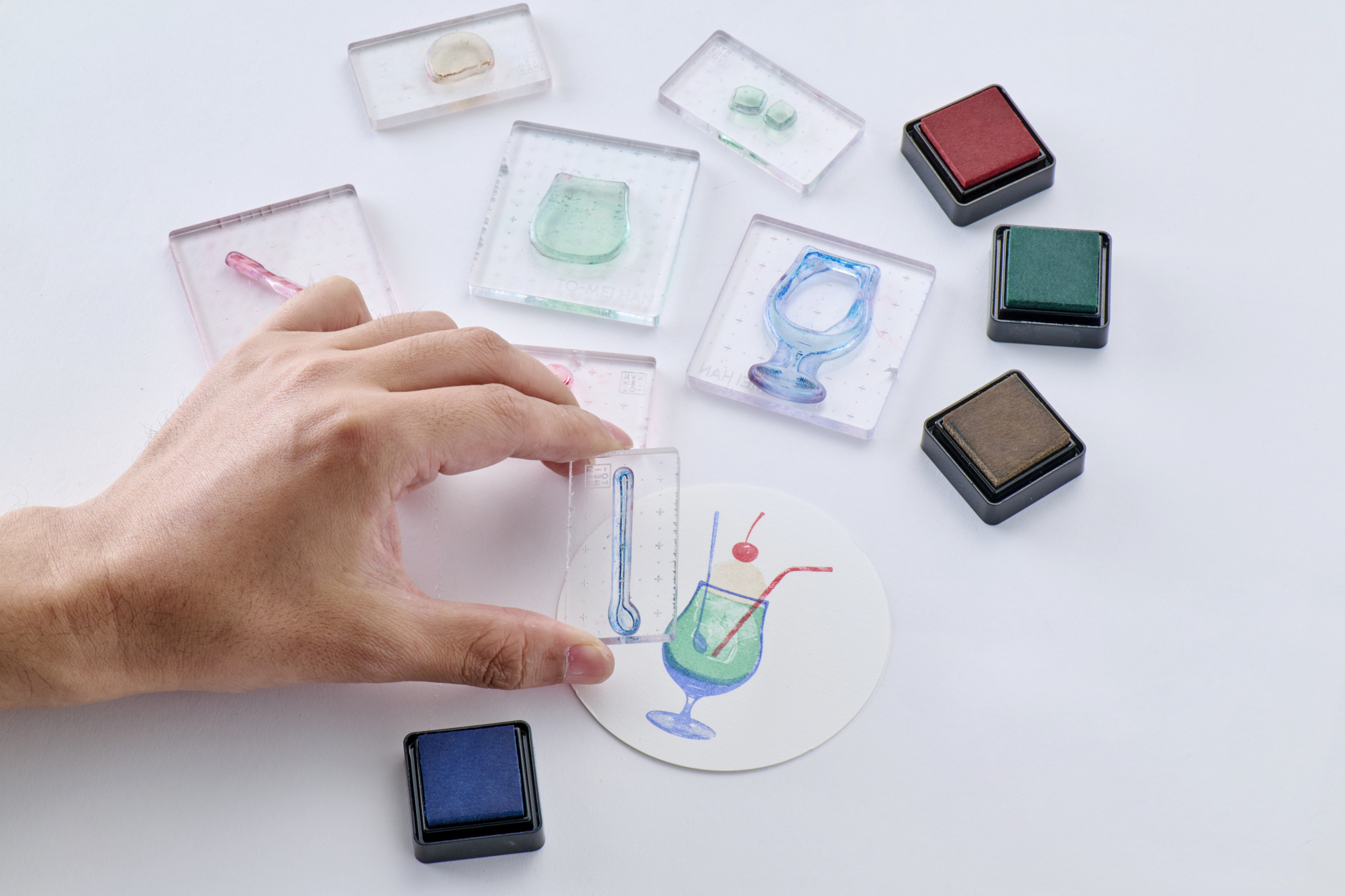 “誰でも綺麗にスタンプを”をコンセプトに実用的で生活にちょっとした豊かさ・幸せを感じられるような商品を目指して制作する。従来のゴム印やシリコン製クリアスタンプにない透明度・インク着肉性・捺印再現性に優れた、フォトポリマー製のクリアスタンプは、透明だからこそできる重ね押しでスタンプの概念を覆します。