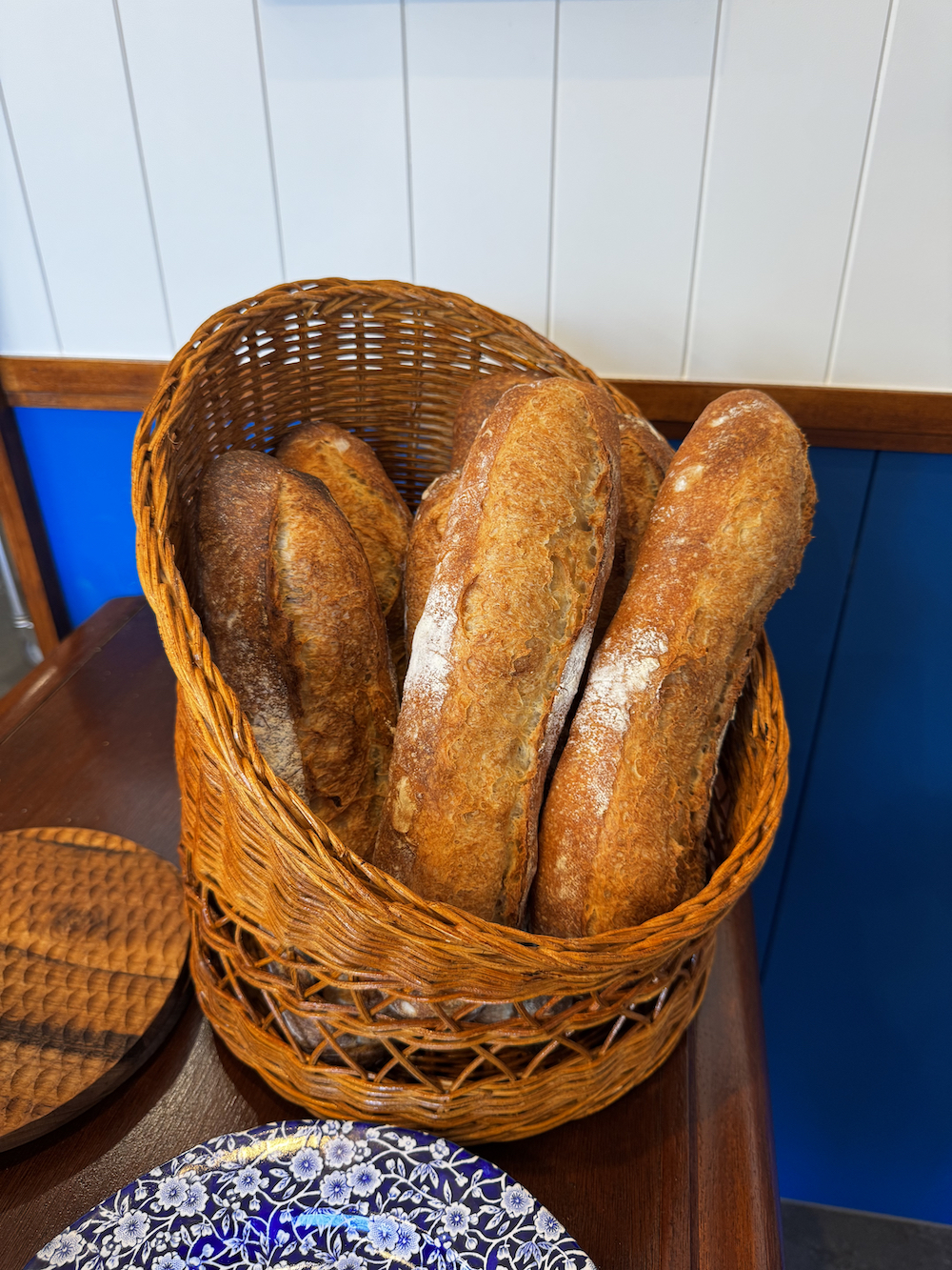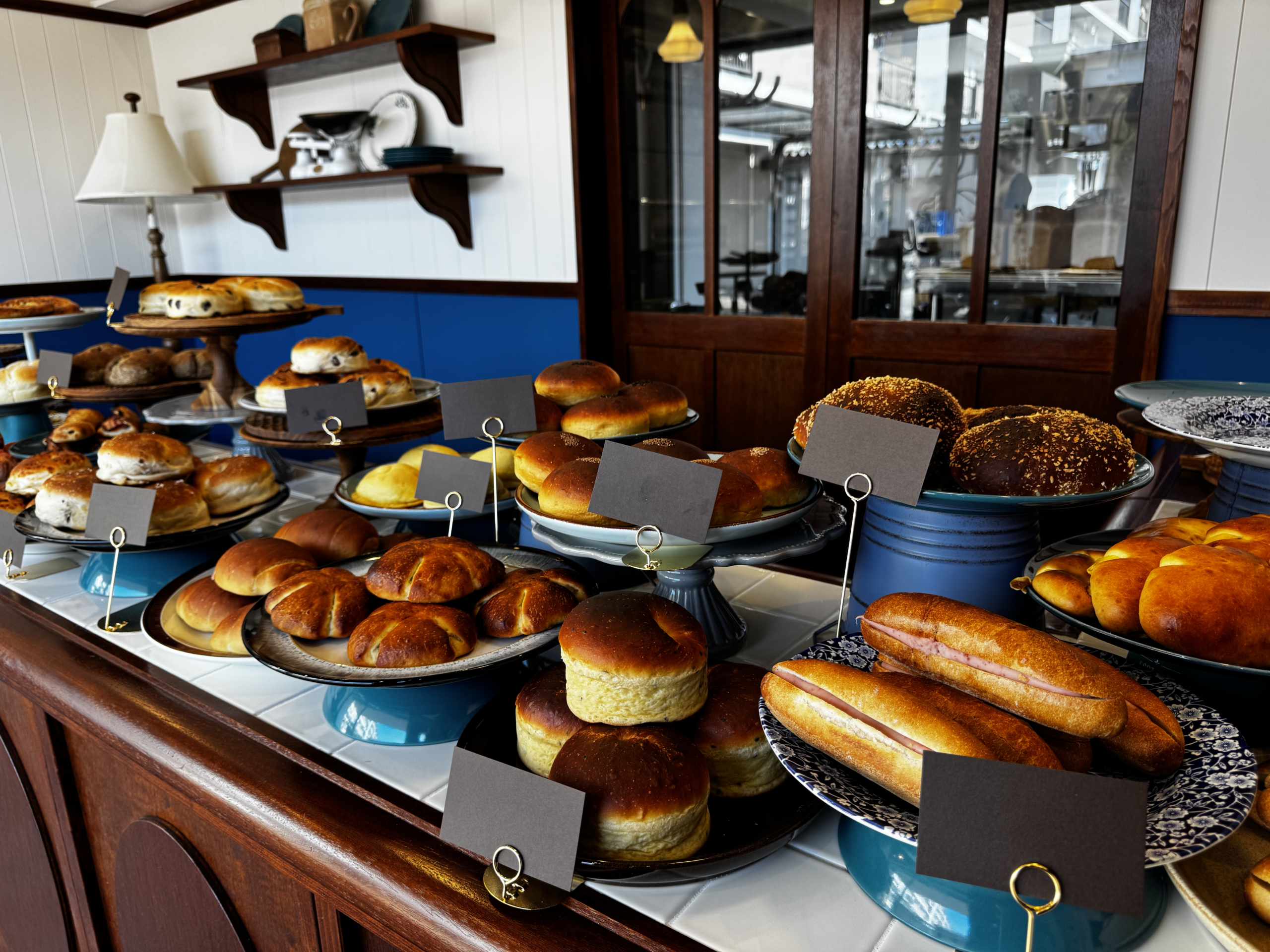 これまでの手紙舎のお店とはひと味違う内装で、イギリスのコーンウォール地方にある海辺のパン屋さんをイメージ(お金、かけてます笑)! 製造室には大きなオーブンとミキサー!たくさんの美味しいパンを製造・販売していく予定です。