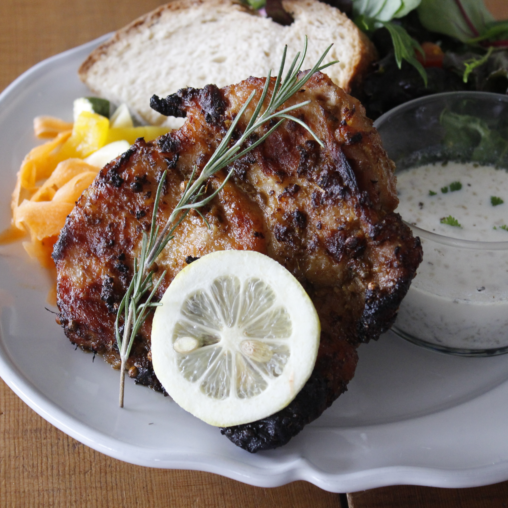 ジューシーに焼き上げたボリュームたっぷりのスパイスグリルチキンに、スープやサラダなどの副菜を色とりどりと盛りあわせた贅沢なプレート。クリスマスのランチにいかがでしょうか? ご予約をお待ちしております。