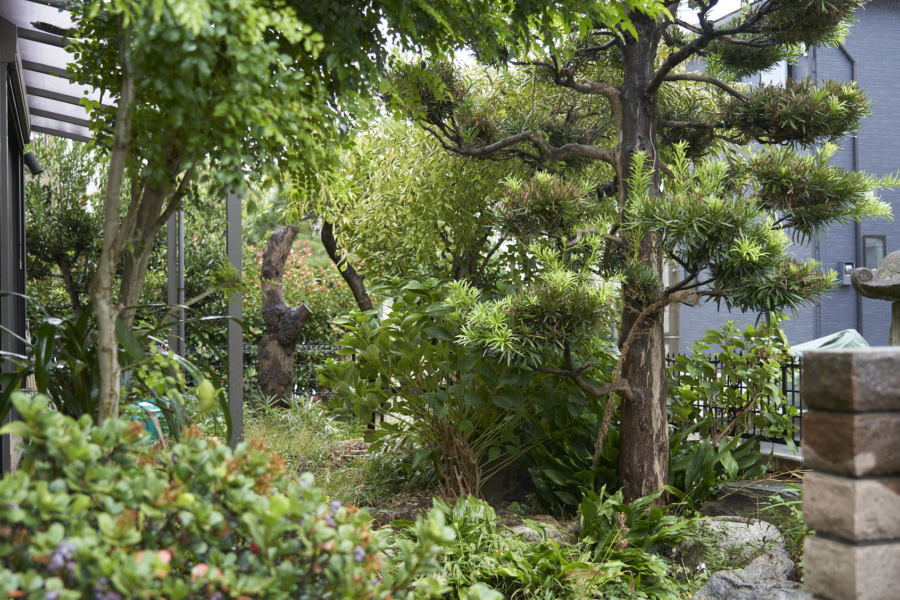 石灯篭のある和風庭園 南側に位置しており、角地でもあるので明るい環境
