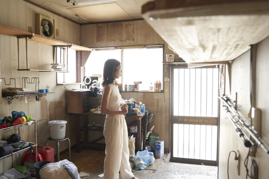 路地に面した工房は昭和の社交場にも 生前のお父様は機械彫刻で看板などの制作を生業としていました。