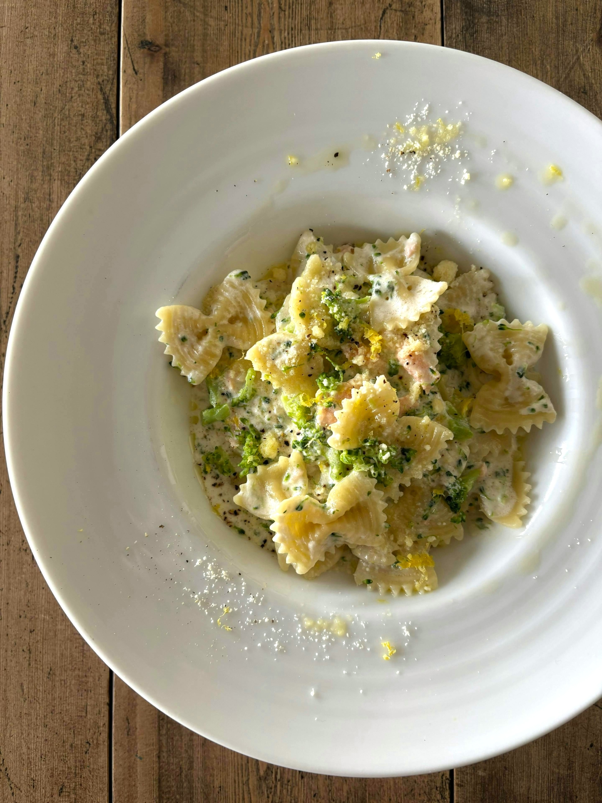 サーモンとブロッコリー&レモンクリームのリボンパスタ